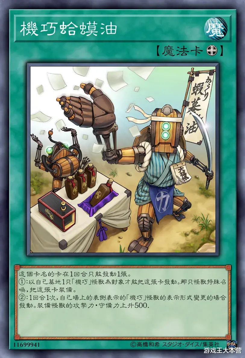 ②:1回合1次,自己场上的表侧表示的「机偶」怪兽的表示形式变更的场合必定发动。自己从卡组抽1张。