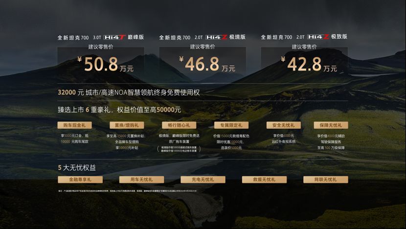 全新坦克700的上市,是坦克品牌技术、产品、用户运营、品牌高端化四维向上的关键里程碑,更是中国品牌冲击高端汽车市场的标志性事件。过去五年,坦克品牌不仅以品类创新开辟了中国越野的新时代,让越野从少数人的爱好成为一种大众生活方式,持续满足用户对更高阶出行体验的向往;更远销海外30多个国家和地区,以中国智造的硬实力,从国内的一枝独秀稳步走向全球舞台。