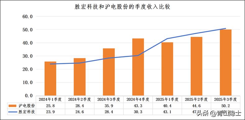 2024年1季度至2025年3季度,胜宏科技与沪电股份季度收入均呈增长态势,呈现“前期沪电领先、后期胜宏反超”格局。