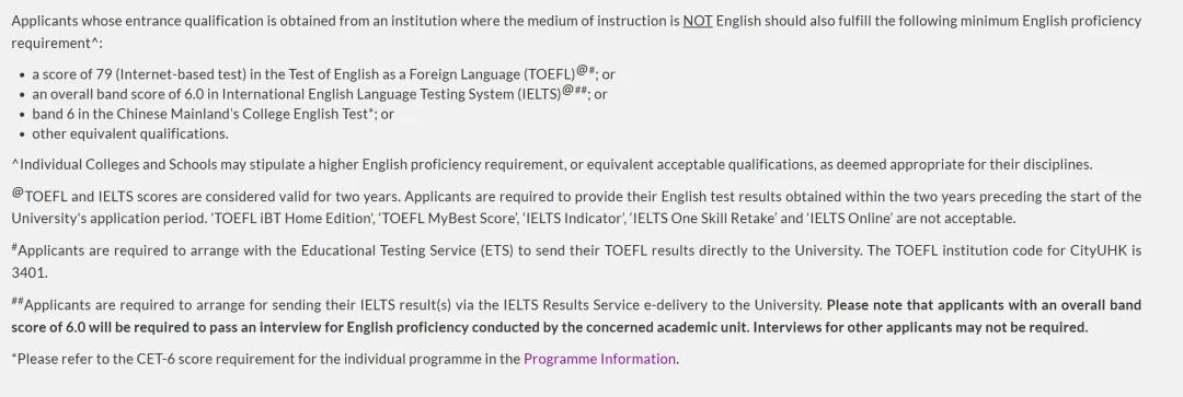 IELTS总分6.0的申请人须通过额外英语面试。