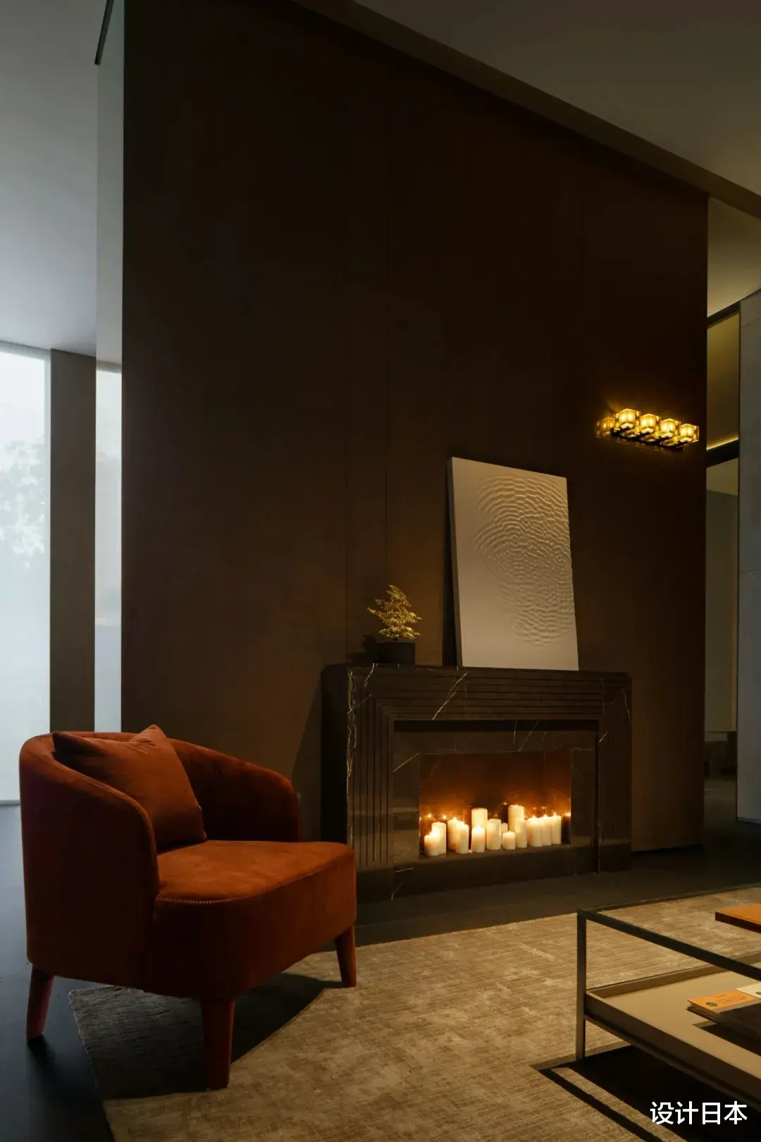 暖柔淡雅的光线轻轻勾勒出每一寸空间的轮廓,而中心处的火苗则成为了这场视觉盛宴的焦点。意式风格的巧妙融入,为这片空间增添了几分优雅与浪漫。焦糖色的丝绒座椅,静静地诉说着关于品质与格调的故事。古铜色的背景墙,为居住者提供了一片远离喧嚣繁杂的净土。在这片古铜色的背景下,火光显得更加明亮而温暖,仿佛能照亮人心底的每一个角落,让人在喧嚣的世界中找到一片属于自己的安宁。