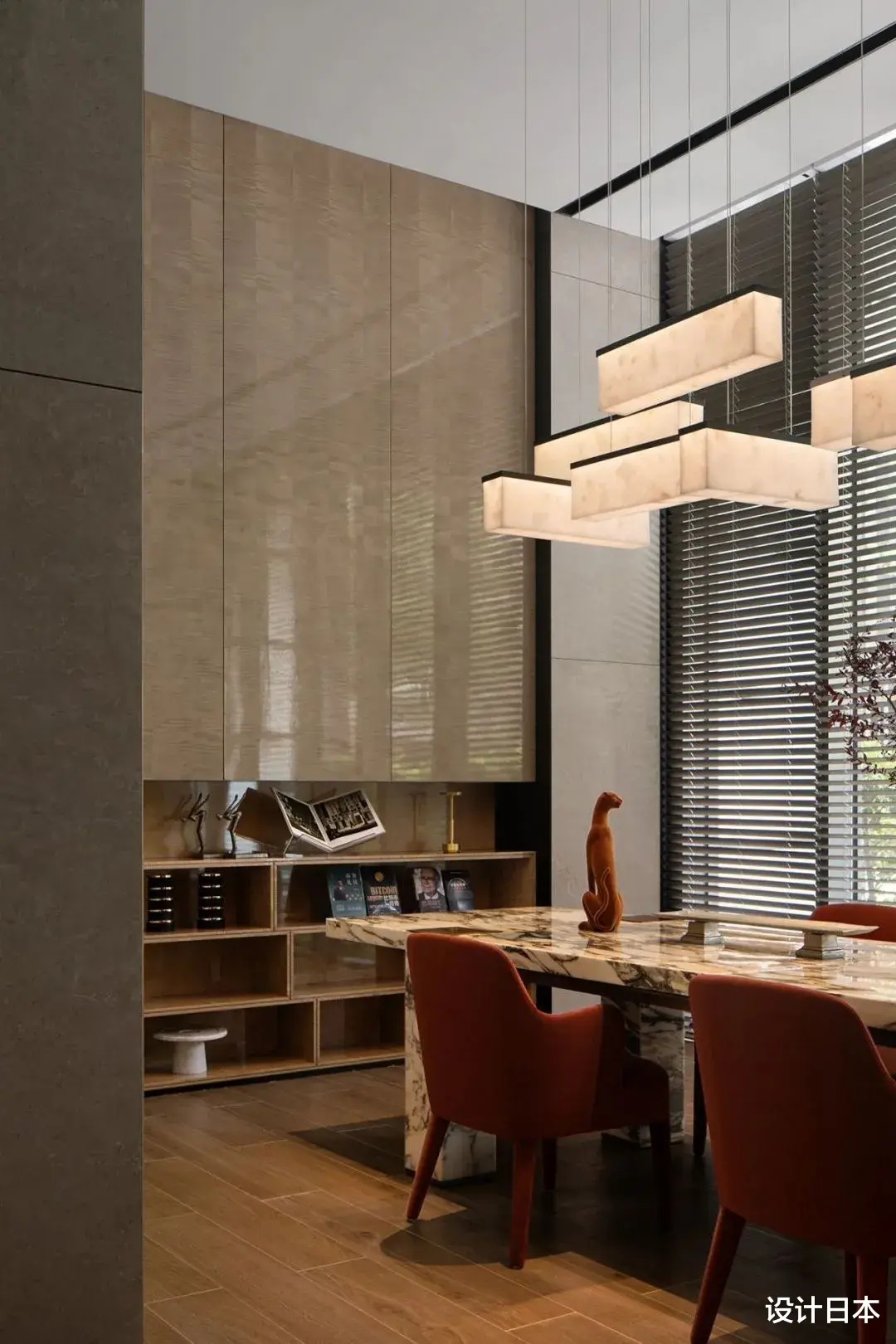 自然的气息顺着细密的百叶窗,如同细流般悄无声息地融入室内,整个空间仿佛被赋予了新的生命与活力。此时的空间,它像是一个充满生命力的艺术载体,承载着人们对于美好生活的向往与追求。