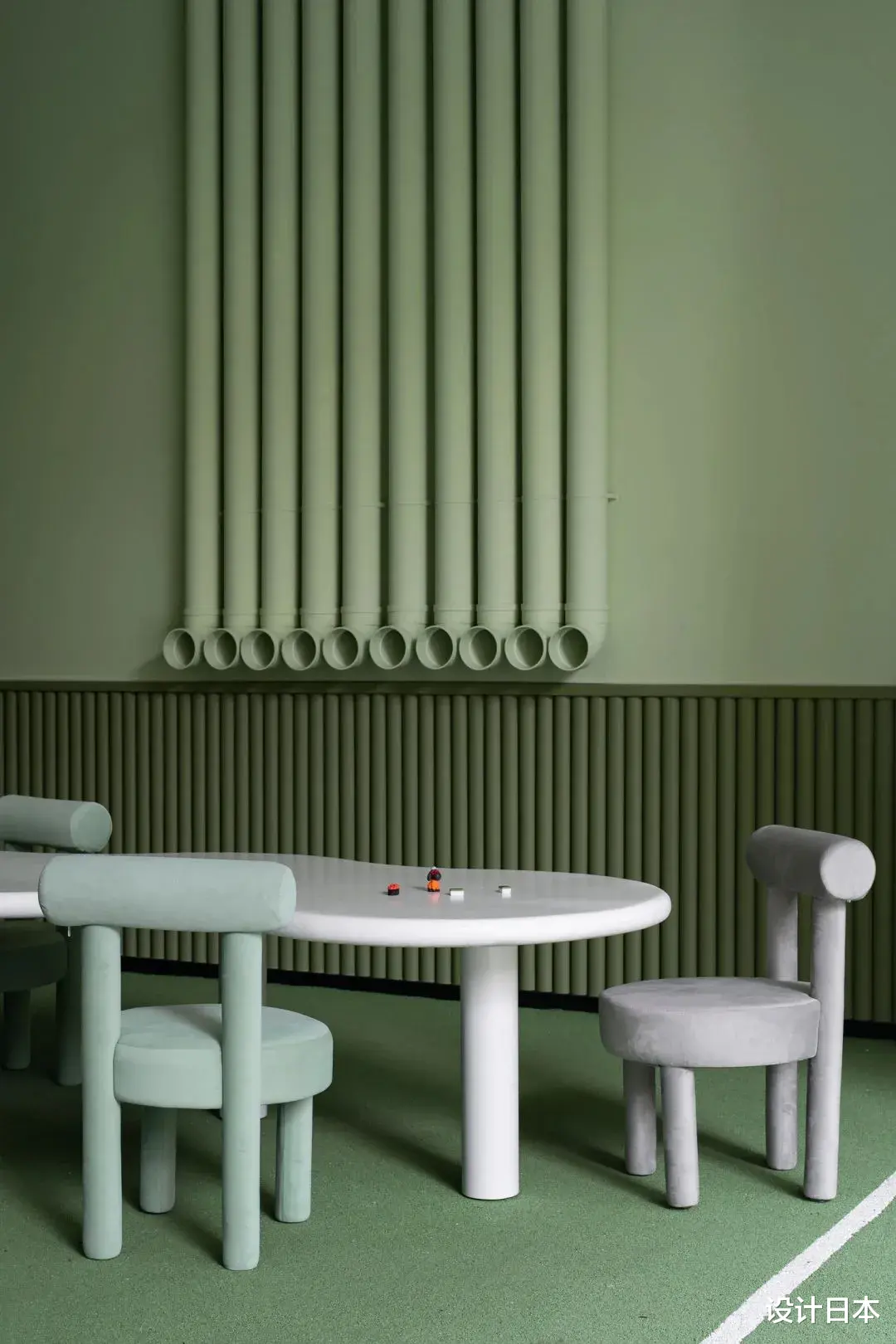 设计理念悄然渗透进儿童区的每一个角落,它以一种独特的语言——充满治愈感的莫兰迪色、细腻流畅的线条以及富有创意的拼贴式壁画,为孩子们精心编织了一个既安全又充满乐趣的梦幻乐园。