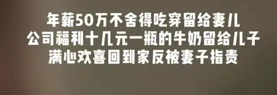 其实,不管是50万年薪,还是十几块一瓶的牛奶,对于普通人来说都很难得了。再看看丈夫的状态,年薪50万穿的却是很普通甚至对他来说是廉价的衣服,可见他对于自己是很节俭的了,这样的丈夫还被妻子嫌弃,甚至妻子还觉得委屈的将他曝光,真的很难理解。