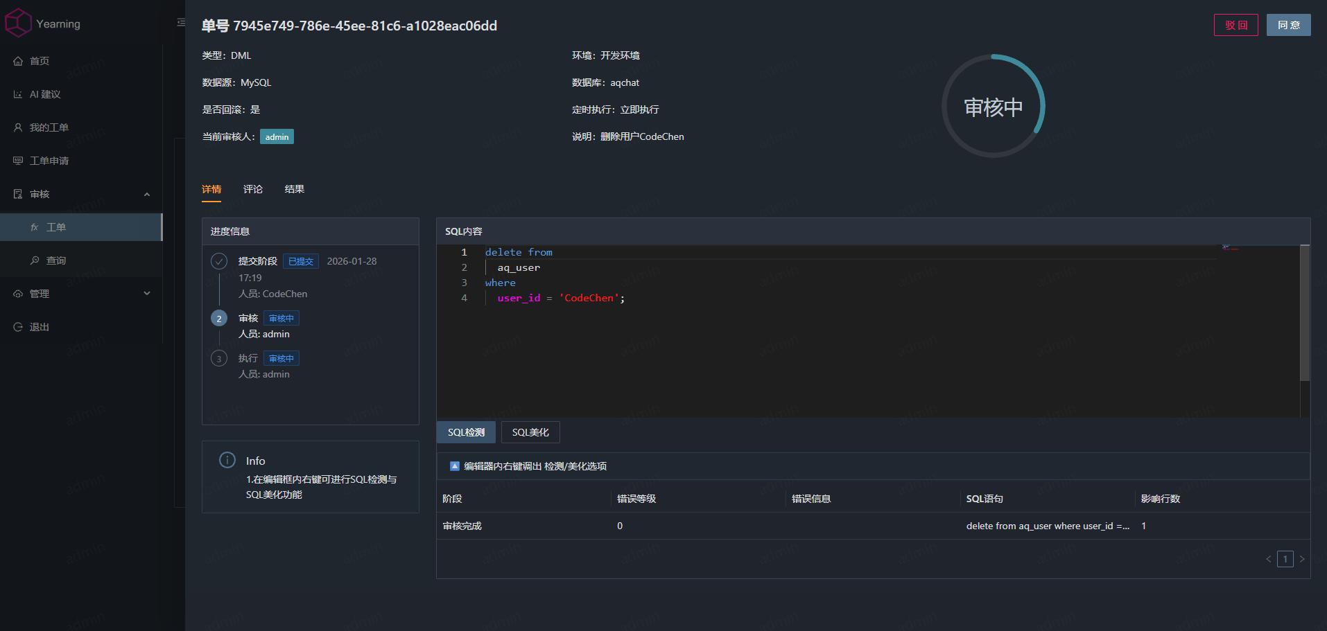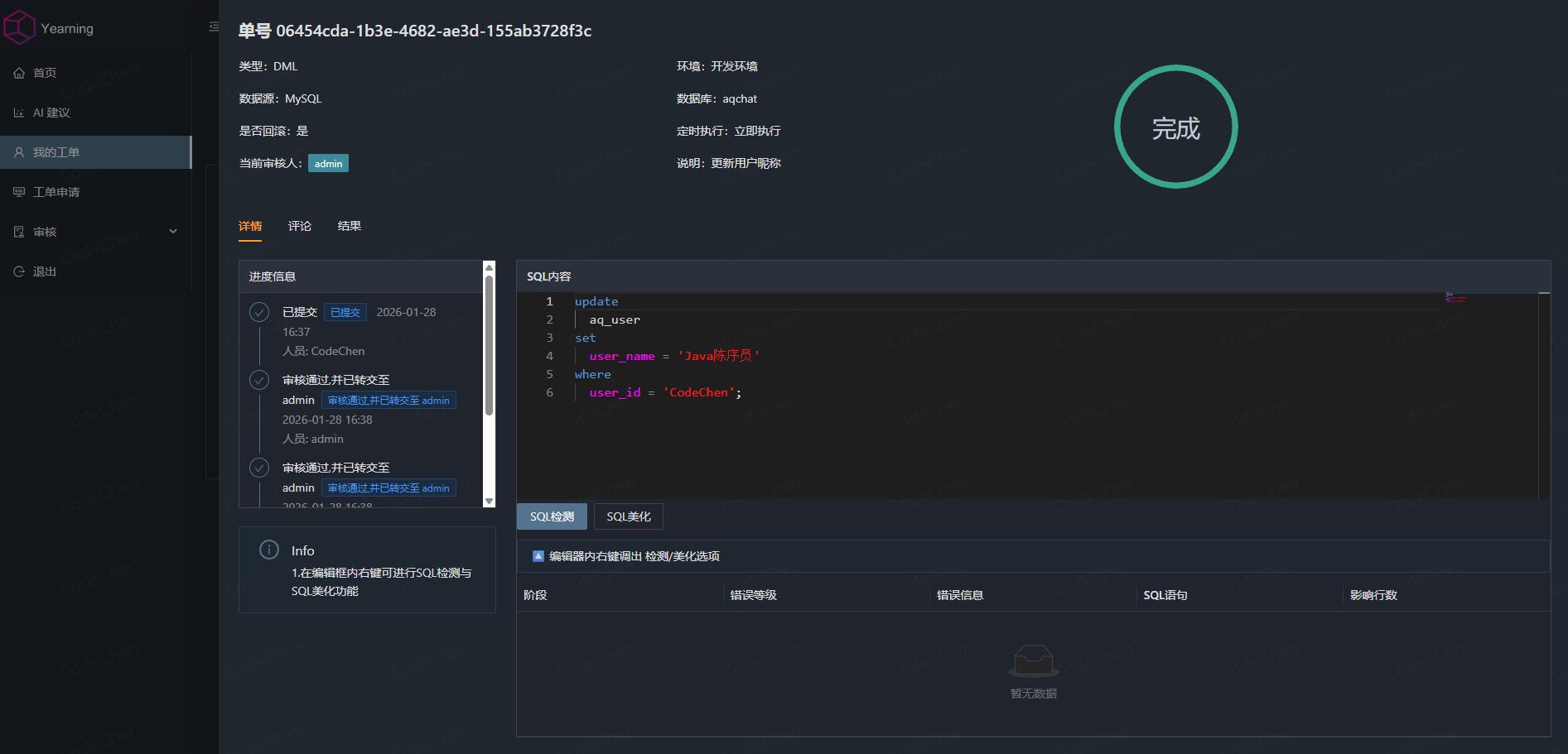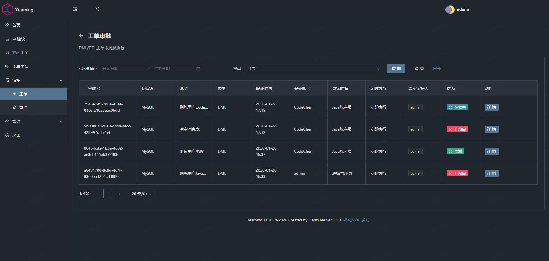 可以说,无论是中小企业的数据库审计需求,还是大型团队的精细化权限管控场景,Yearning 都能适配。如果你正被 SQL 审计、权限管控困扰,不妨试试!快去部署体验吧~