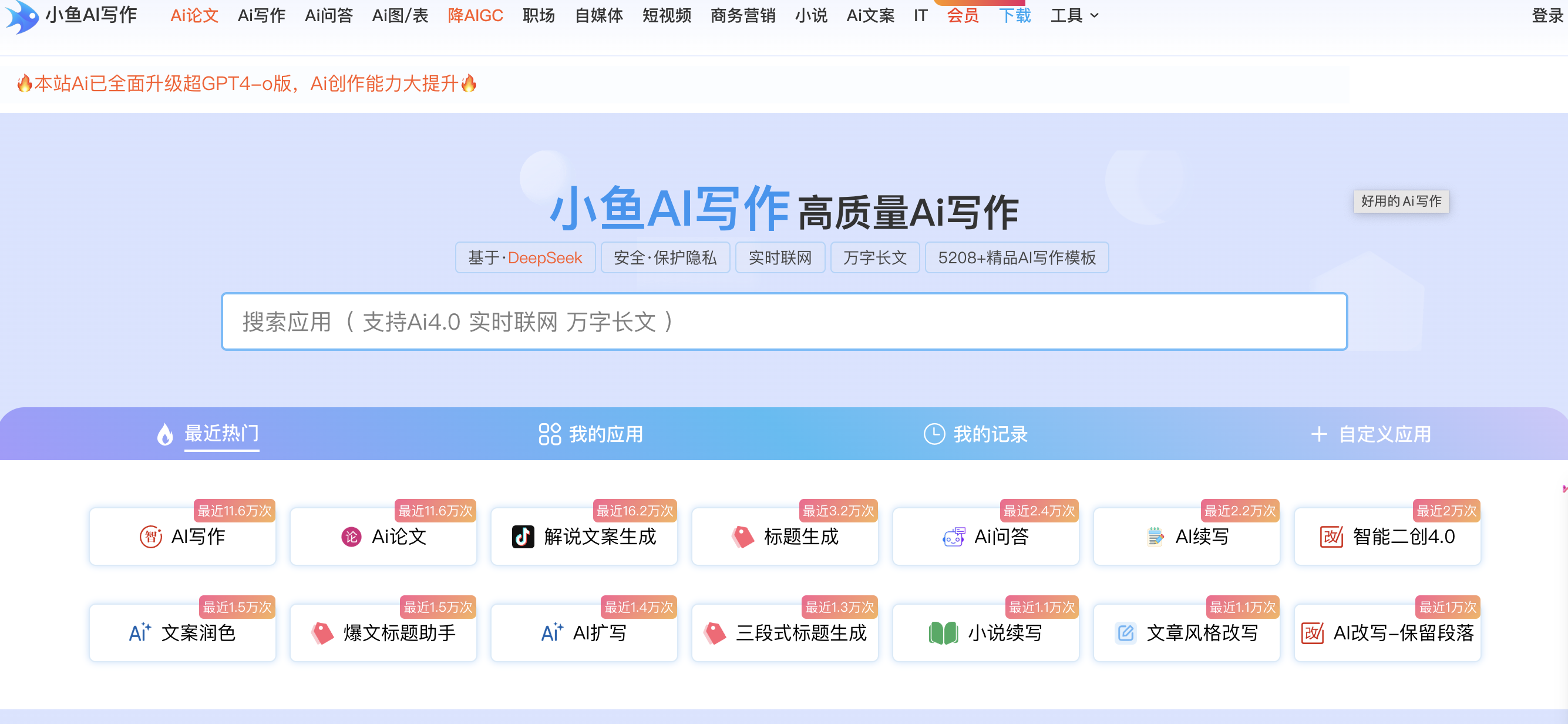 小鱼AI堪称AI论文生成领域的宝藏AI论文写作工具!它内置超5200个智能论文写作模板,全面覆盖专科毕业论文、本科毕业论文、研究生毕业论文、硕士毕业论文、博士毕业论文等核心学术场景,堪称专业的AI论文助手。