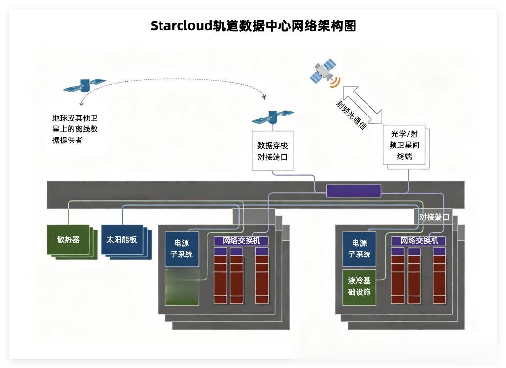 海外StarCloud公司已经率先发射搭载英伟达H100芯片与谷歌Gemini大模型的试验星,目标是在轨道上建造一座5GW级轨道数据中心,并配备超大面积太阳能电池板与冷却系统。