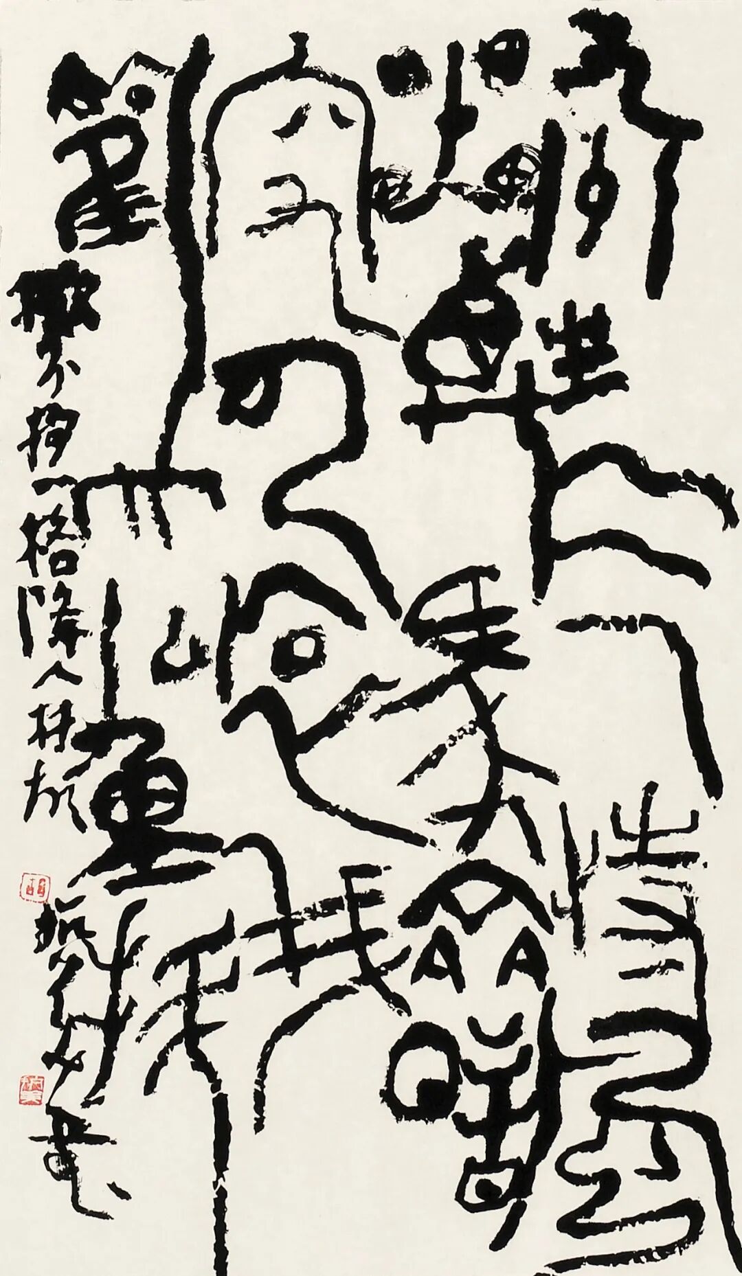 文学作品在塑造人物的时候,要塑造各种不同类型的艺术形象。书法在创作过程中,也存在着通过什么去塑造艺术形象的问题。简单地说,是通过点画、结体、空白的造型,再通过它们之间的组合,组合后产生某种关系。只有这样,作品才能成为有生命感的有机整体,它会说话,能呼吸,透出一种节奏,一种律动感,一种生命体征。而片面突出技法恰恰是限制这一切的。点画只有通过组合建立起美的关系,才能和谐。