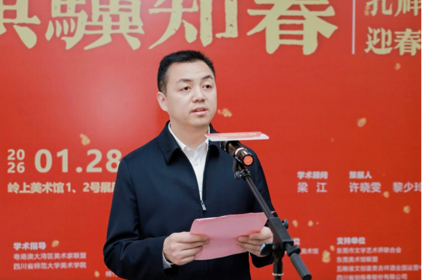 黄芸芸表示,2026年适逢中国共产党成立105周年与红军长征胜利90周年,在此重要历史节点,于东江纵队的重要发源地东莞大岭山镇举办本次展览,具有特殊而深远的意义。她致敬艺术家深耕传统、推动川粤两地文艺交流、契合“骐骥知春”的艺术精神,支持此次展览的共识,肯定了展览以“马跃新程、春在乡土、花鸟有象、器以载道”为脉络的策展理念,期望通过展览促进川粤两地艺术互鉴与情谊延续。