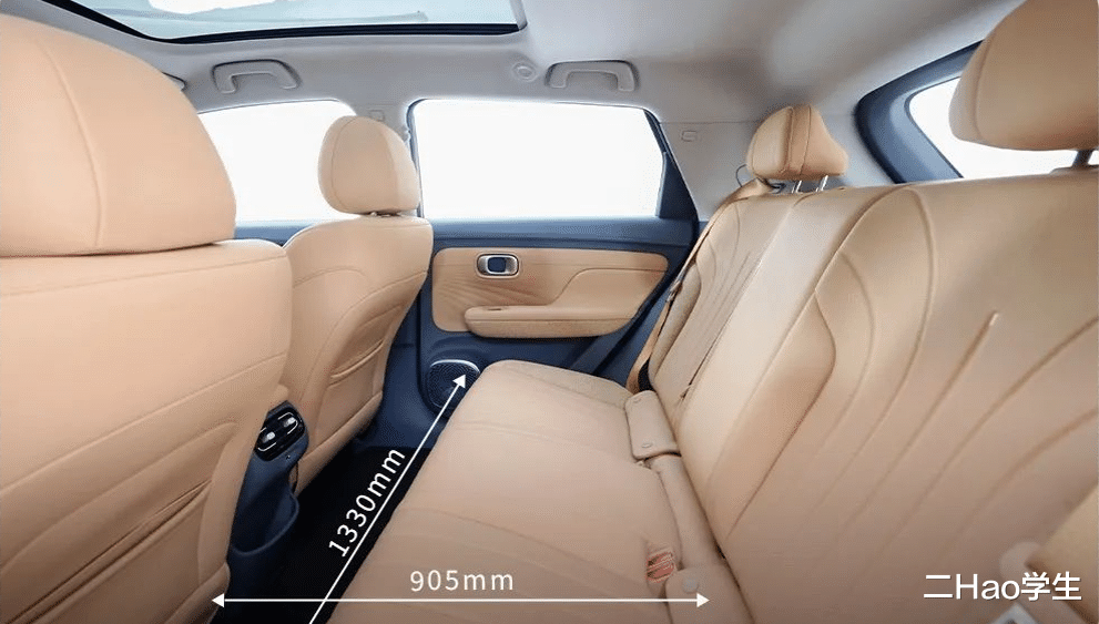 905mm后排腿部空间,1330mm后排臀部空间(作为比较:海豚685mm/1371mm;星愿771mm/1396mm;ID.3则为790mm/1390mm)。实话说905mm的数据存疑,具体还要考虑前座的调节位置,毕竟汉也仅有821mm的腿部空间。