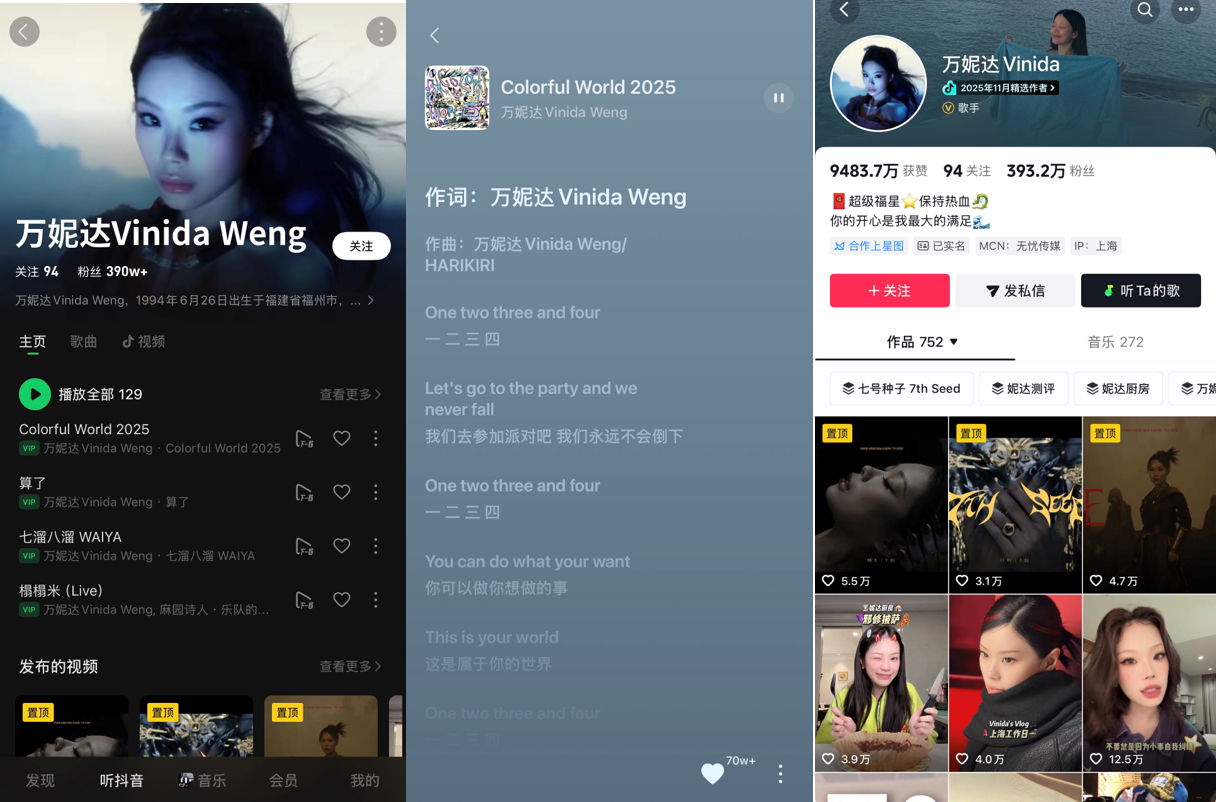 更具字节特色的是“音乐+场景”的创新变现。目前汽水音乐数字专辑销售,依托双平台宣推优势持续发力。据官方资料,知名音乐人万妮达通过汽水音乐与抖音的联动,发行重置版单曲《Colorful World 2025》,不仅带动个人抖音账号涨粉50万,相关数字专辑销量也创下了独立音乐人同类作品年度新高。