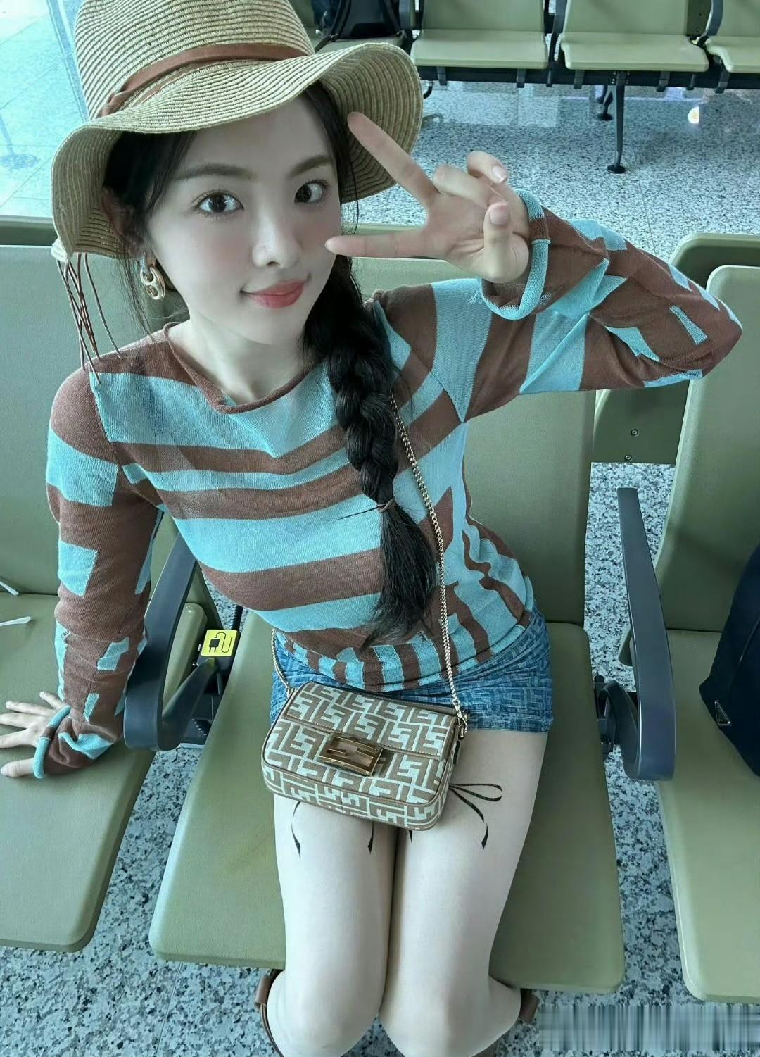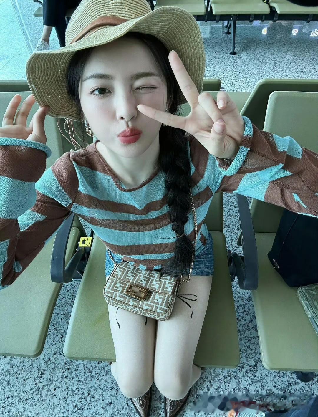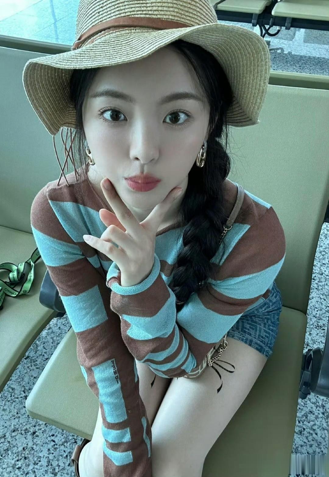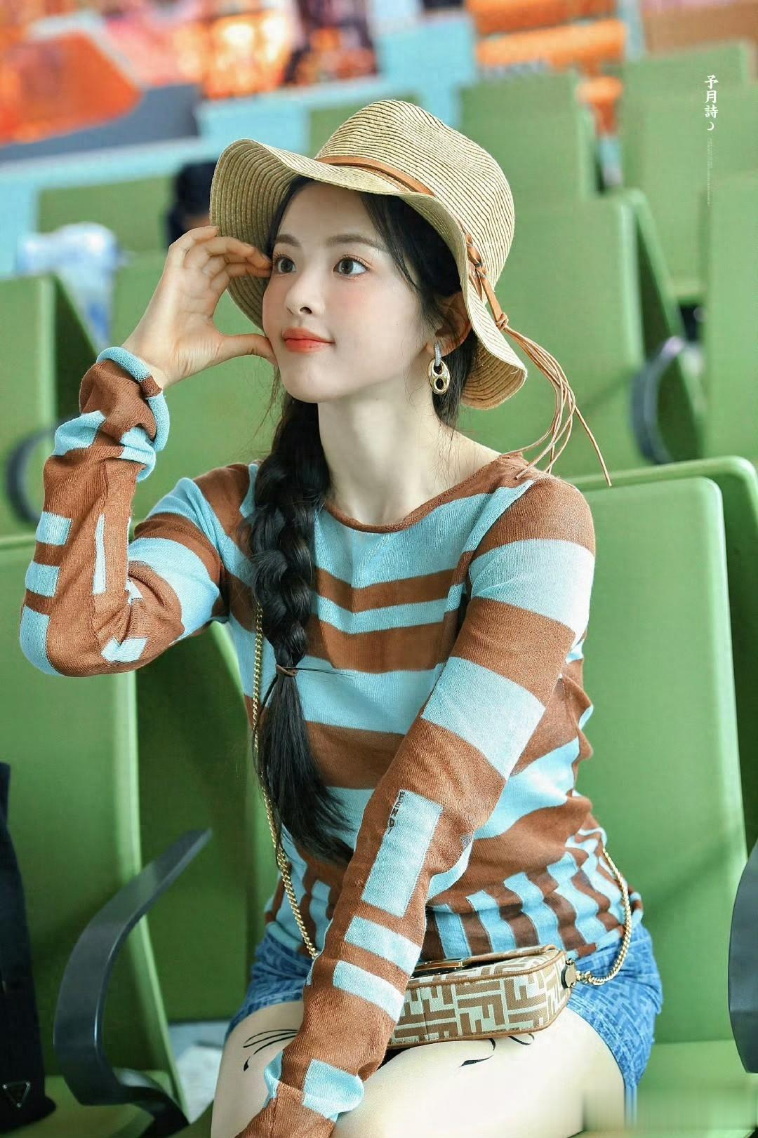 粉色本就自带甜美属性,针织材质又增添了几分温柔。百褶裙随风飘动,青春感直接拉满。还有她戴着的白色贝雷帽,俏皮可爱,为整体造型加分不少。感觉她特别会选适合自己的衣服,把甜美的风格发挥得淋漓尽致,每次看到她的私服,都让人忍不住想跟着学呢。