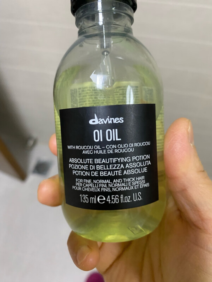 且初的使用感受尚可,吹完半干发涂两滴,染后发尾毛躁压下去不少,摸起来软了点。其实它渗透不算慢,但湿发涂头顶易塌,油脂配比偏滋润不清爽。隔天下床发尾微翘,得补半滴,深层修护感弱。