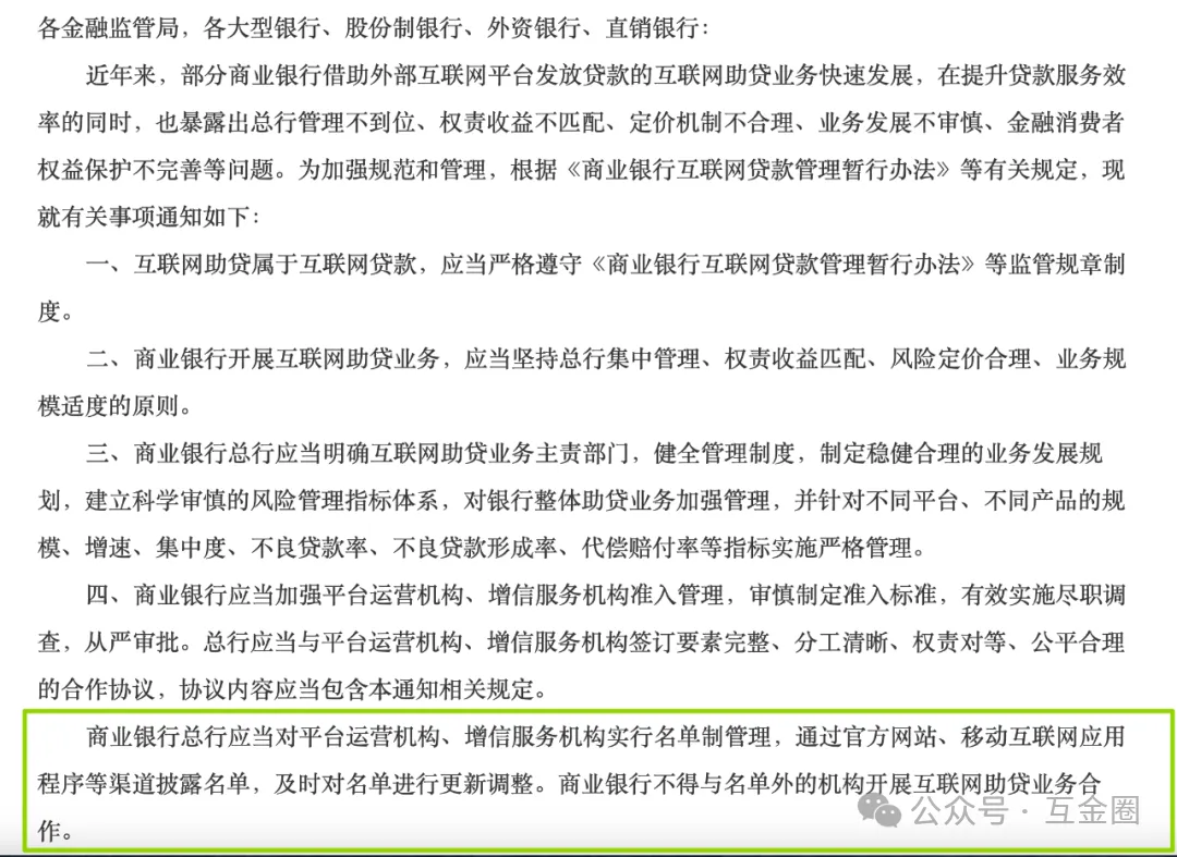 监管部门希望通过制度化要求整顿行业乱象、压实银行主体责任,引导互联网助贷业务规范健康发展。
