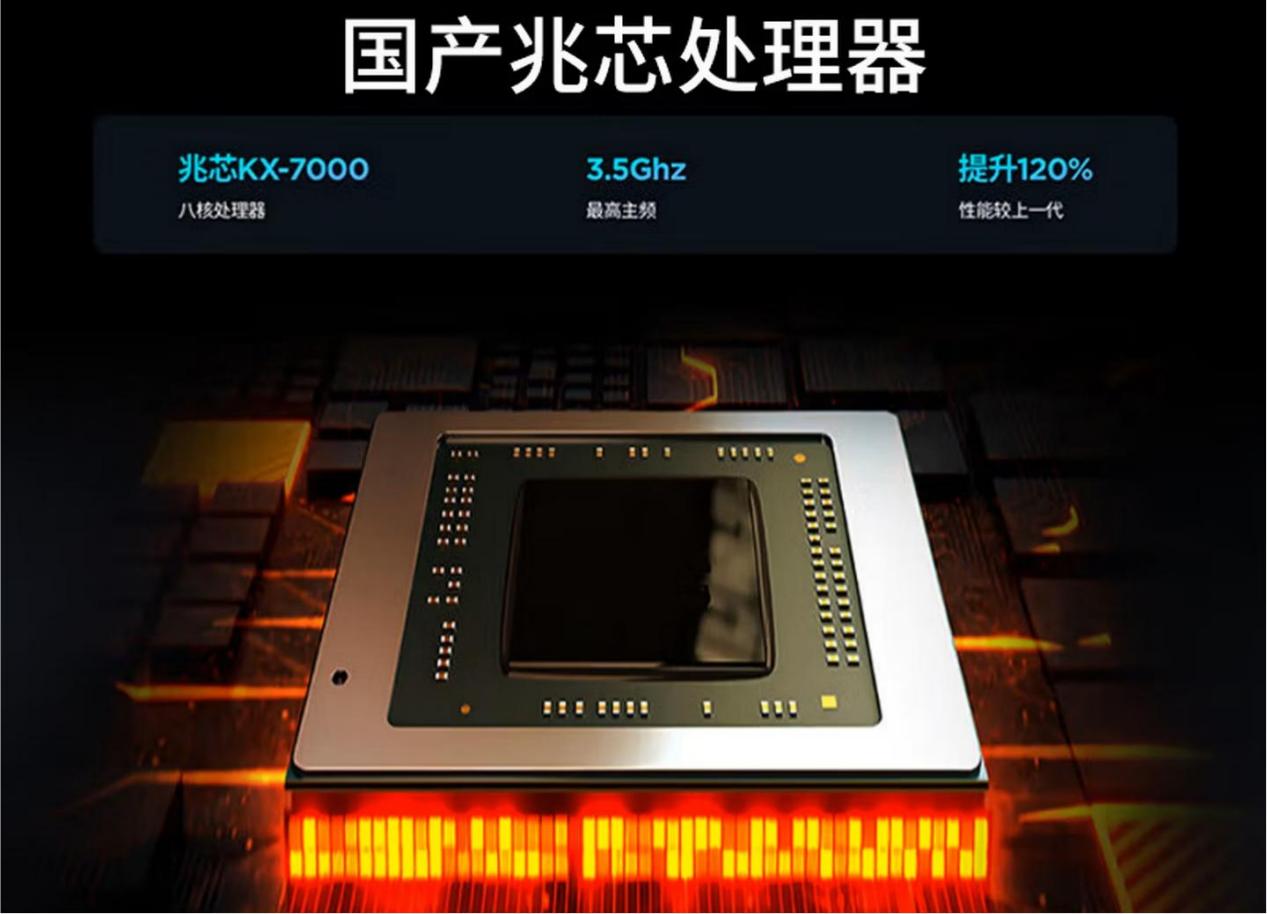 它搭载了兆芯KX7000处理器,这颗“中国芯”采用了先进的16nm制程工艺,拥有8核8线程的强大规格,最高睿频可达3.5GHz。这是什么概念?其性能较上一代提升了惊人的120%,单核跑分超过800分,多核跑分逼近3800分,实际表现已经非常接近英特尔第8代酷睿i5的水平。