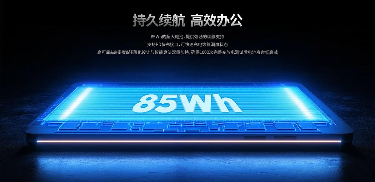 内置的85Wh大容量锂电池,提供了长达8-10小时的续航能力。这意味着,即使你从早会开到晚会,或者在出差的高铁上处理紧急邮件,也无需时刻寻找电源插座,彻底治愈“电量焦虑症”。