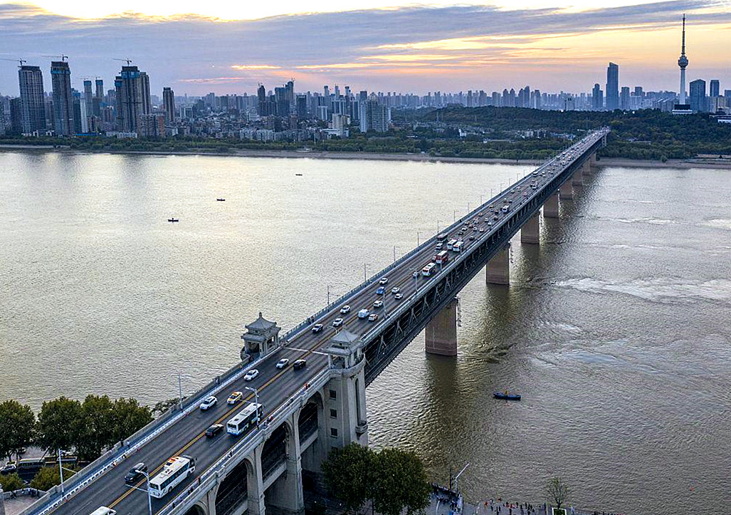 武汉长江大桥是武汉市境内连接江北的汉阳区与江南的武昌区的过江通道,它位于长江的主航道之上,中心里程在京广线K1206+027 ,是中华人民共和国成立后修建的第一座公铁两用的长江大桥,也是武汉市重要的历史标志性建筑之一,素有“万里长江第一桥”美誉。武汉长江大桥于1955年9月1日动工兴建;于1957年7月1日完成主桥合龙工程;并于1957年10月15日通车运营。武汉长江大桥西起汉阳区的楚琴立交,上跨长江水道,东至武昌区的中山路;线路全长1670.4米,主桥全长1155.5米;上层桥面为双向四车道城市主干道,下层为双线铁轨。