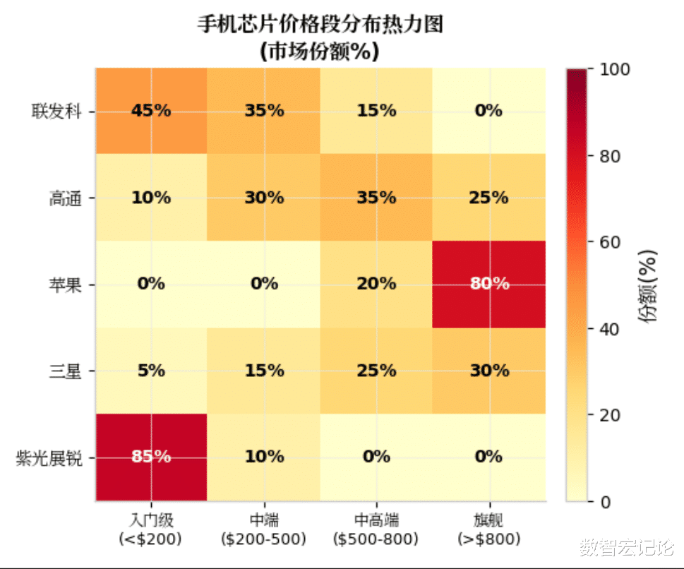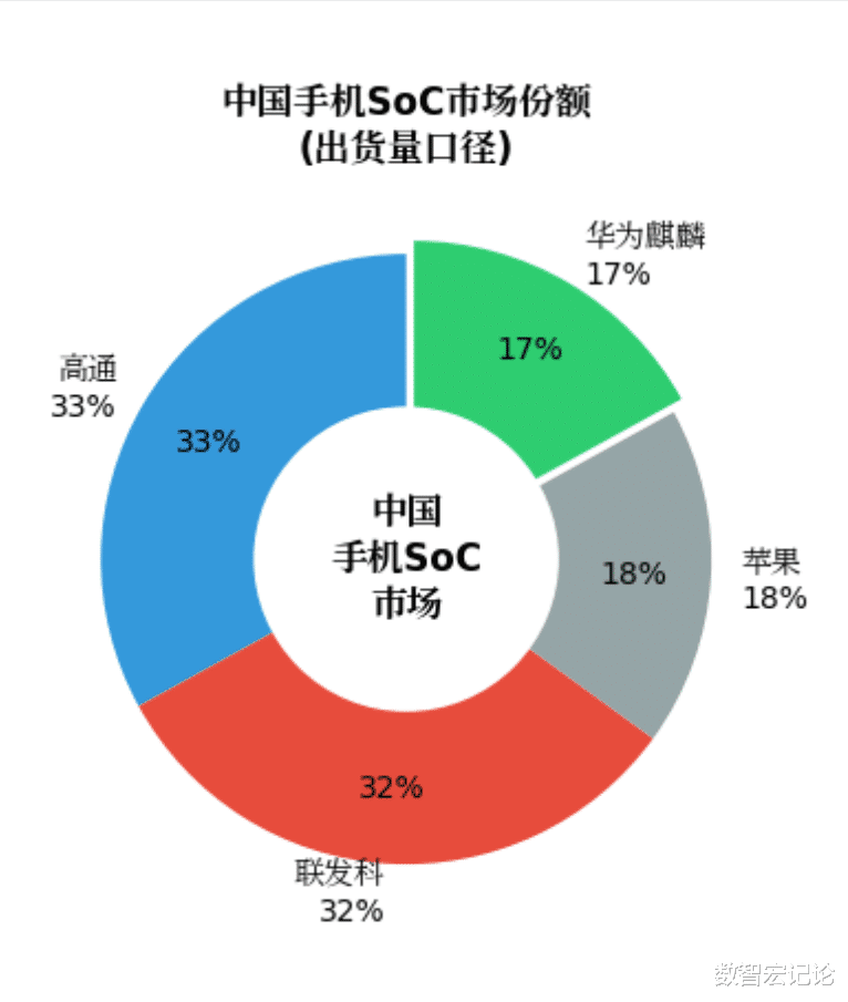 其他厂商:市场占比持续收缩,主要包括紫光展锐、小米澎湃等,其中紫光展锐在国内入门级市场仍有少量出货,但份额已不足1%,小米澎湃芯片目前仅小范围搭载,对市场格局影响较小。
