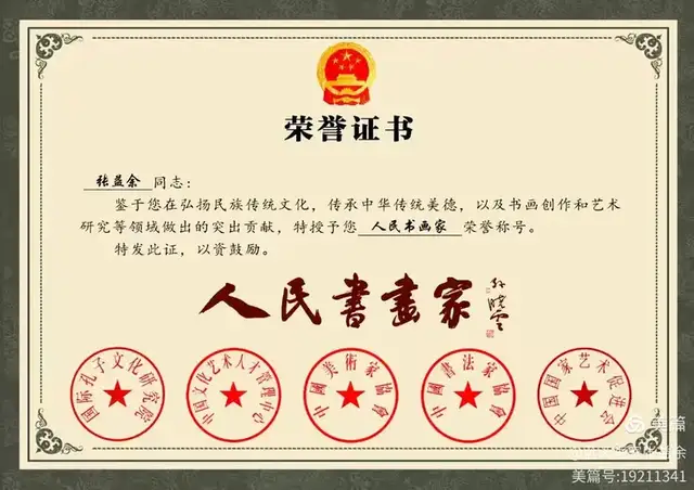 2022年被中国美术家协会、中国书法家协会等权威机构授予《人民书画家》荣誉称号。