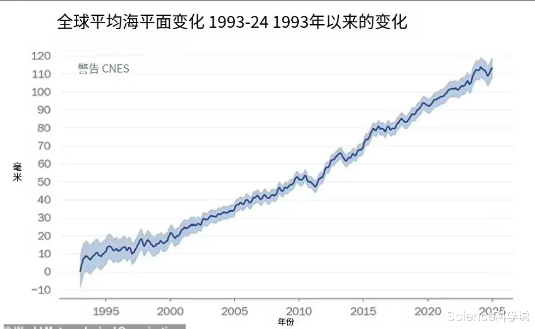 监测显示,全球海洋温度创65年观测史新高。2005-2024年间的海水升温速度,竟是1960-2005年的两倍!更骇人的是,即便立即停止排放,海洋升温将持续整个21世纪。而每年2730亿吨冰川融水的注入,正在引发海平面以每年4.7毫米的“死亡速度”攀升。