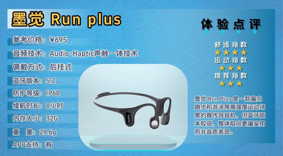 墨觉Run Plus定位在水陆全场景运动的骨传导耳机,核心卖点很明确,就是一副耳机覆盖跑步、游泳和日常使用,主打功能完整、不用频繁换设备。