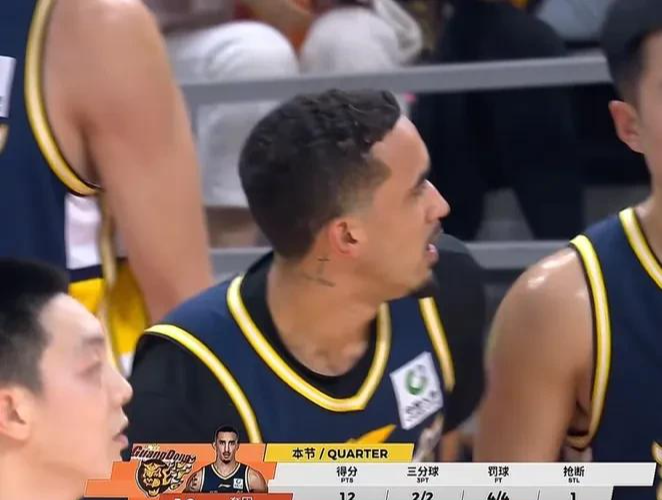 第二节回来之后,吉林男篮在曾凡日摩尔和威尔逊一口气将分差缩小到3分,广东男篮只能叫暂停进行战术的布置。暂停回来之后,派出的是萨林杰搭档萨姆纳,王洪泽、陈家政,加上胡明轩。广东男篮的阵容是速度快,而且防守有强度。暂停回来之后,广东男篮又是一口气将分差扩大到8分。