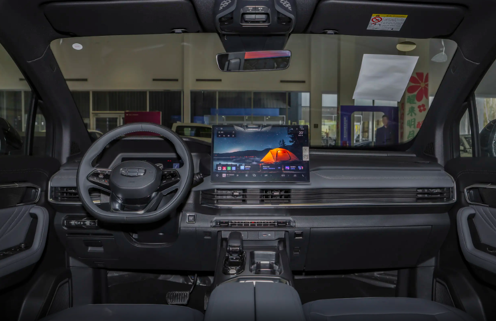 进入车内,2026款豪越L的内饰布局规整,提供了暖阳棕与月影灰两种配色主题。用料方面,它的中控台等处覆盖了一定比例的软性材质,并辅以个性纹路和金属饰板点缀,提升了座舱的质感。与此同时,这款车型全系标配的10.2英寸全液晶仪表和14.6英寸悬浮式中控屏构成了车内科技氛围的核心。值得一提的是,2026款豪越L搭载了Flyme Auto智能座舱系统,这套系统在操作逻辑上借鉴了智能手机的习惯,支持智能语音控制、多指飞屏操作以及丰富的互联生态(如华为HiCar),能给人较为优秀的使用体验。可惜这款车型并没有标配L2级智能驾驶辅助系统,更没有搭载激光雷达的版本,否则它的受欢迎程度应该还会大幅度提高。