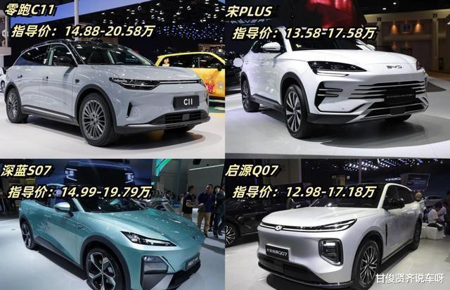 咱先把目标缩小点,看看这几款经过市场验证的热门选手:比亚迪宋PLUS、零跑C11、深蓝S07、启源Q07。