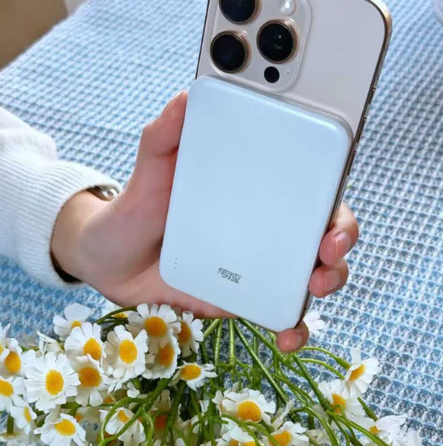 充电宝哪个品牌最好最耐用?这款充电宝电池容量有5000mAh,额定容量3000mAh,日常出门给手机应急充电完全够用,电芯采用的是钴酸锂,稳定又靠谱。它还支持磁吸功能,用的是N54磁铁,吸附力很强,往手机背面一贴就能牢牢吸住,不用再额外带数据线,随手一吸就能开始充电,特别方便。 机身也做得相当轻薄,厚度只有7.1mm,称得上是超薄设计,整体尺寸为长103mm、宽69.7mm,拿在手里小巧不占地,放进包里也不占空间。产品净重仅109g,手感轻盈,长时间手持或者随身携带都不会觉得累赘,不管是通勤、逛街还是短途出行,带着它毫无负担,颜值与实用性兼备,日常补电用它再合适不过。
