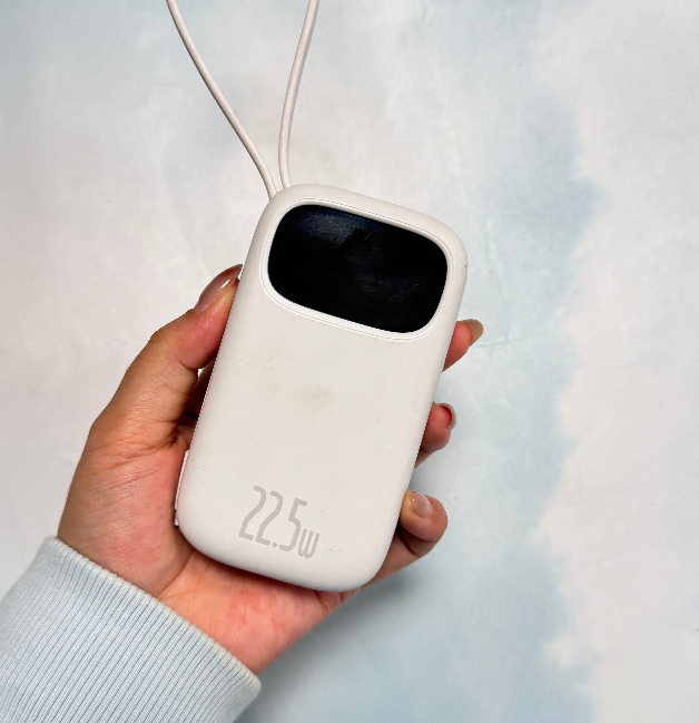 充电宝哪个品牌最好最耐用?它的电池容量是5000mAh,额定容量2700mAh,这个容量不算大,日常用着只能应急,给手机充一次电基本就差不多了,这是它比较明显的缺点。电芯用的是21700电池,和普通充电宝的电芯类型不一样,安全性也中规中矩。它支持22.5W充电功率,充电速度不算慢,日常应急补电是够用的。充电方式是自带线设计,有USB-C和Lightning两个接口,不用额外带数据线,苹果、安卓手机都能直接用,还是比较方便的。它的标配重量只有100g,体积也很小,拿在手里很轻便,揣口袋、放小包里基本不占地方,携带起来很省心,就是容量太小,没法满足长时间外出的供电需求,只能临时凑合用。