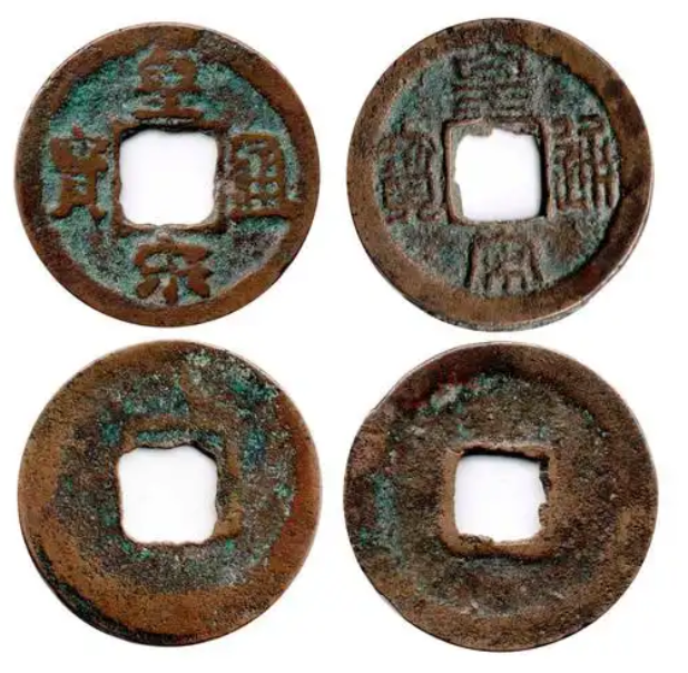 从形制来看,皇宋通宝延续了古代圆形方孔钱的经典样式,“天圆地方”的形制暗合古代宇宙观,直径约2.4-2.6厘米,重量约3.7克左右,整体铸制规整、厚薄适中。其钱文直读为“皇宋通宝”四字,背面多光背无文,少数版别带有星纹、月纹等标识。按材质划分,皇宋通宝主要分为铜钱和铁钱两大类,铜钱以小平钱为主,另有罕见的折二对钱;铁钱仅见小平钱,主要流通于四川及山西部分地区,适配当时不同区域的贸易需求。