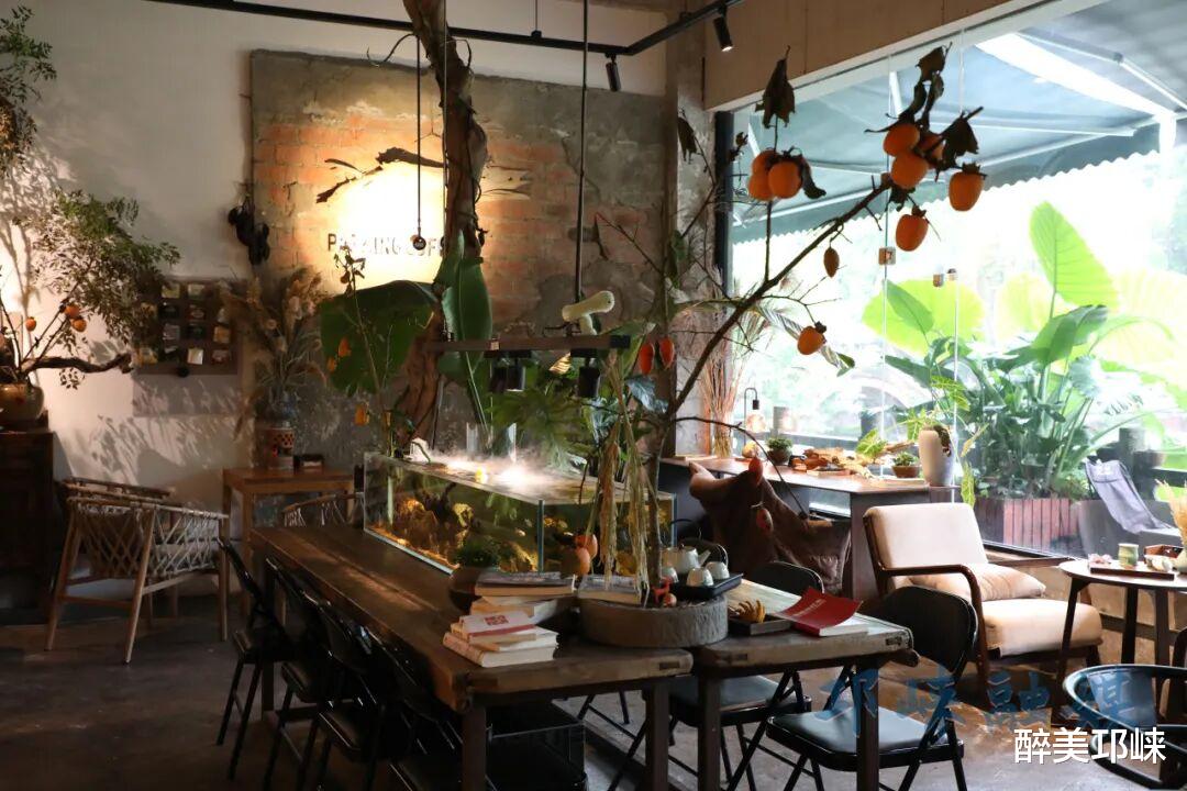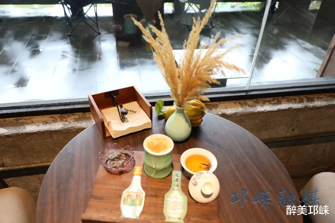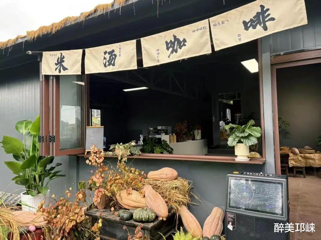 邛崃的咖啡空间创新不止于城市公园。在火井古镇,老粮仓焕发新生,原始建筑结构被完整保留,水泥灰屋顶搭着原木桌椅,落地窗将阳光和乡野景致温柔地框进来。书架上的书随意摊着,音乐透着闲散,捧一杯拿铁坐在曾经装满丰收的屋子里,让人顿悟“到乡野,即良方”的意境。