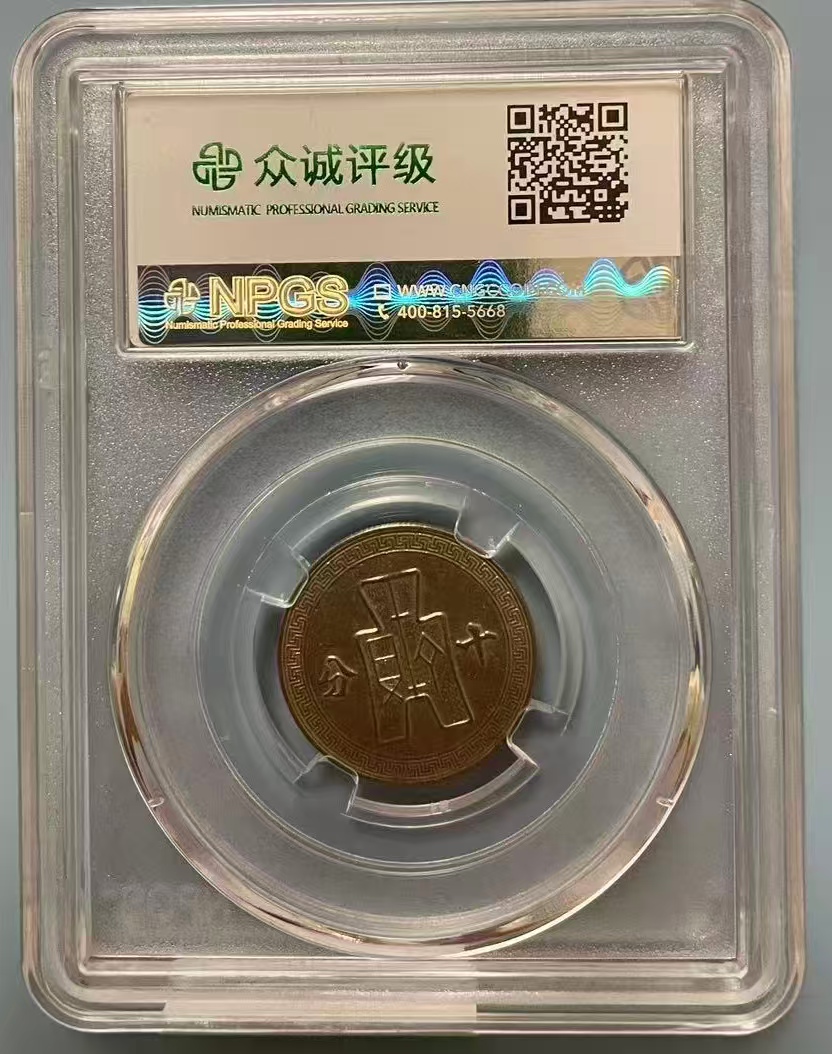 品相稀缺性:众诚评级 MS62 的高品相,意味着币面磨损少、细节清晰,在历经数十年的民国铜币中实属难得。这种 “优质品相 + 权威评级” 的组合,让它在收藏市场更具吸引力。