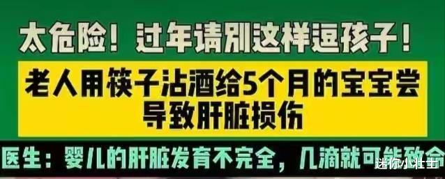 春节期间,酒成了餐桌上的常客。有些亲戚觉得孩子可爱,会逗孩子用筷子蘸点酒让孩子舔一舔,或者让孩子尝一口含有酒精的饮料、甜品,像酒酿圆子这类。他们可能觉得就一点点,不会有什么影响,但这其实大错特错。