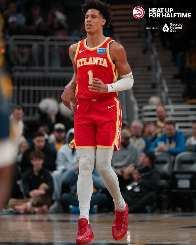 老鹰这边,同样有6人得分上双。杰伦·约翰逊表现出色,出战37分钟,投篮29中12,三分球6中3,罚球8中6,空砍33分12篮板10助攻3抢断的三双数据,这是杰伦本赛季第8次三双。杰伦在25岁前已经3次拿到30+三双,在锋线球员中仅次于詹姆斯和字母哥。