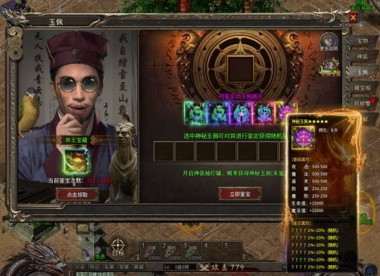 《藏宝阁》还有真特殊的《玉佩》系统,玉佩系统总的有5类,分别对应绿色、蓝色、紫色、红色和金色。越高级颜色的玉佩属性越高特殊属性条也越多。玉佩每天可通过游戏的红包充值免费领取一个,快快来体验吧。