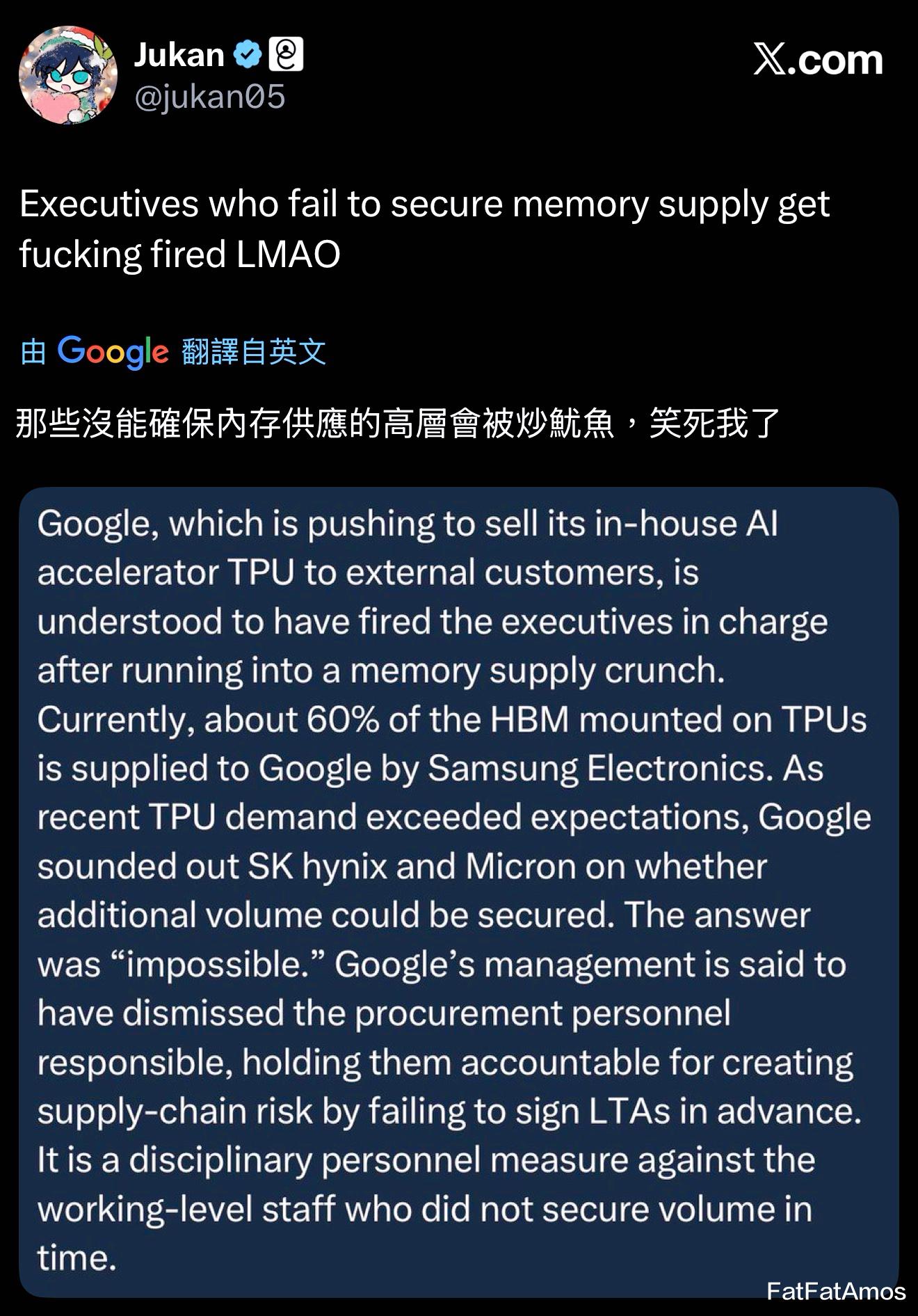 当一位谷歌的采购高管由于没抢到足够的存储芯片而被解雇之时,这并不只是简单的人事变动,而是对更为深层的产业逻辑的一种映照 AI 时代的供应链战争,已经从技术竞赛转变成为一场围绕预判能力的生死对决。