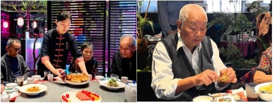 席间,欢声笑语交织成温馨的画面,老人们脸上洋溢着满足与幸福的笑容。他们纷纷赞叹,这些菜品既保留了地道的绍兴风味,又巧妙融入了时令的清新,让人赞不绝口。“我们年纪大了,这些菜又新鲜又合口味,很感谢你们的邀请。”老人梁月星的话语中满含感激。