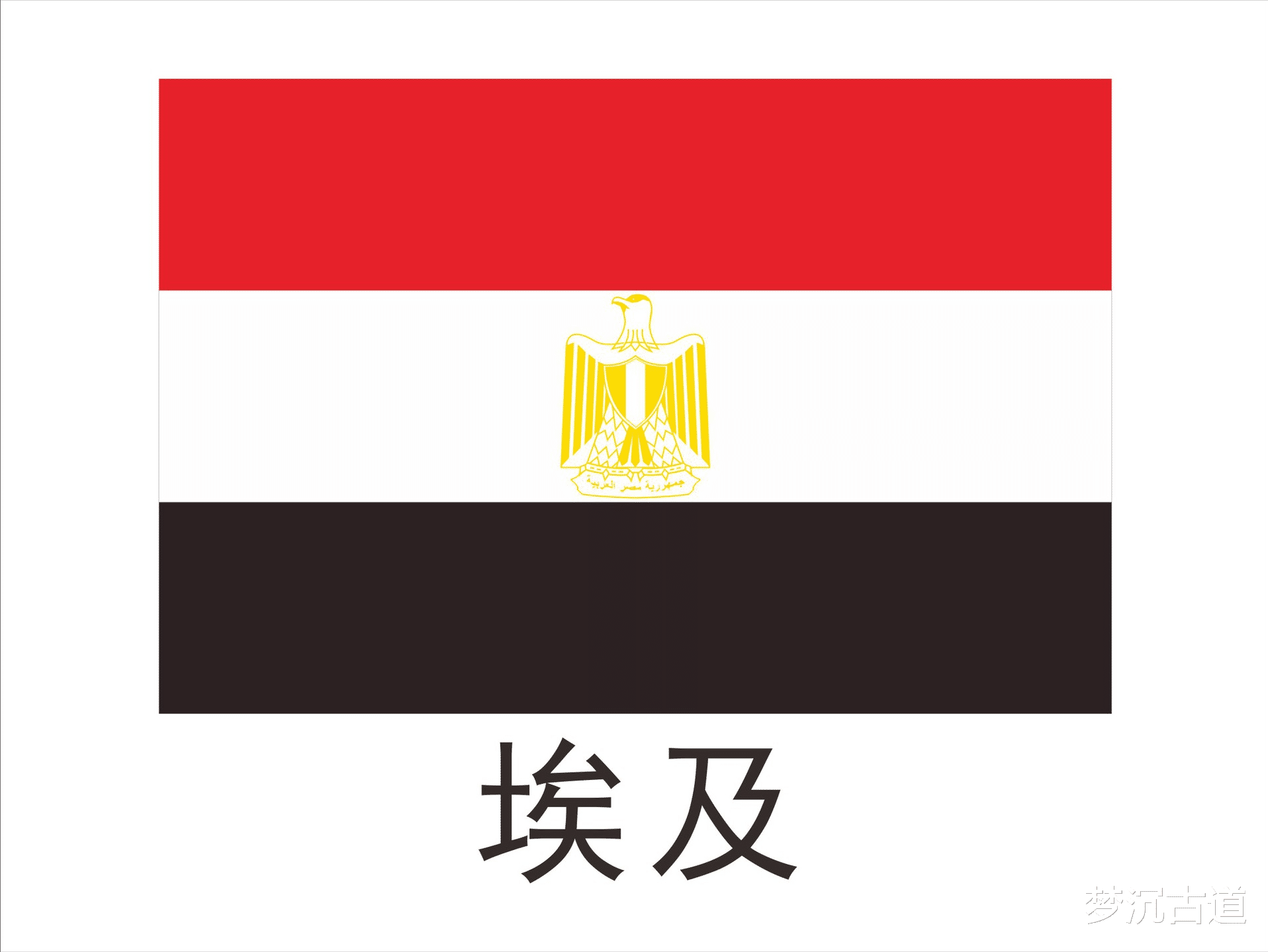 这四面国旗中伊拉克、叙利亚和也门的国旗都是由四种颜色组成的,也就是红黑绿白四种阿拉伯传统色组成的,只不过其中一种颜色体现在星星上,其余三色以长条形式表现在旗帜上。这里的埃及比较特殊,历史有绿色,后来去掉了。