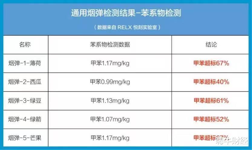 通配烟弹一直是国内外电子烟行业面对的“顽疾”。 除了扰乱市场秩序,对消费者来说,通配烟弹的质量本身也存在隐忧。记者了解到,悦刻曾对市场上一批通配烟弹进行苯系物检测分析,并发现通配烟弹普遍存在苯系物超标等问题。