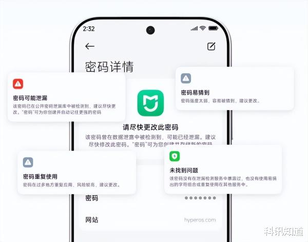 安全是密码管理的重中之重。澎湃OS 3密码APP集成智能风险预警系统,利用AI能力实时扫描密码库,检测常见安全问题: