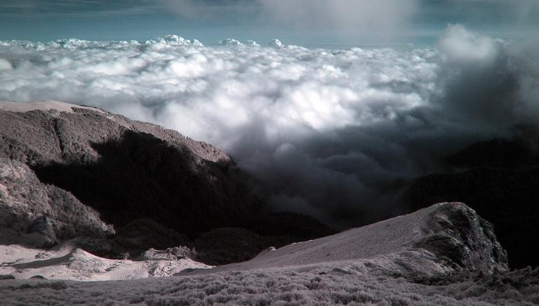 不过奇莱山还有另一个称号,叫“黑色奇莱”,主要是它地势复杂、山中气候多变,上一秒可能还晴空万里、下一秒就阴云密布、暴雨狂风。阴雨逆光之下的奇莱山像是被一团深深的迷雾笼罩,让人置身其中如梦似幻、不知今夕是何夕,所以极容易发生迷路和失温现象。可即便奇莱山山难不断,诡异莫测,却仍吸引着大批登山者前赴后继的探索和挑战。