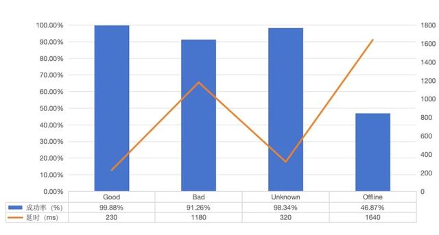 RTT+成功率模型,切换识别速度较单RTT模型提升约50%,成功率跌0后的Bad切Good识别明显较慢