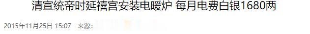 法制晚报:清宣统帝时延禧宫安装电暖炉 每月电费白银1680两 2015-11-25