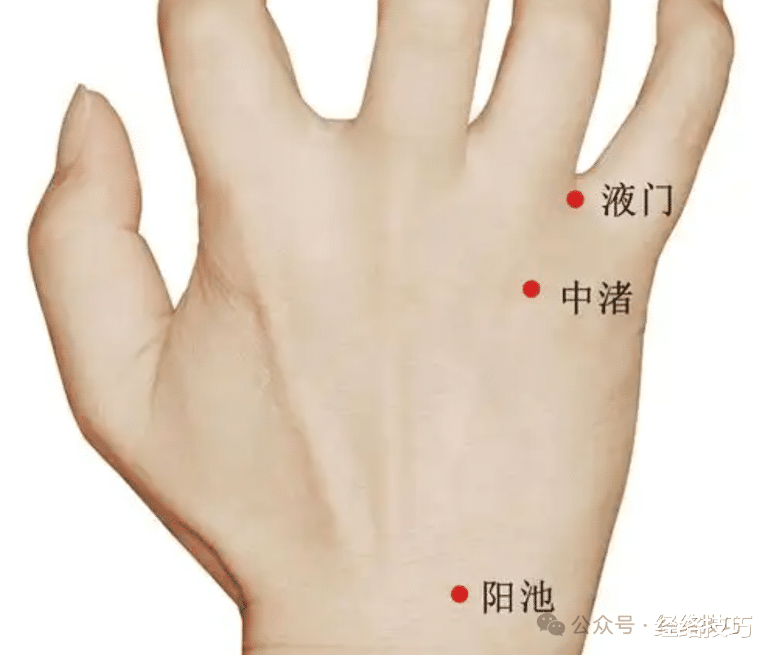顺着小指和无名指指缝,从指尖向手腕轻轻刮动。这里是三焦经液门穴与中渚穴所在区域,轻刮指缝,可给经络通道做日常清淤。