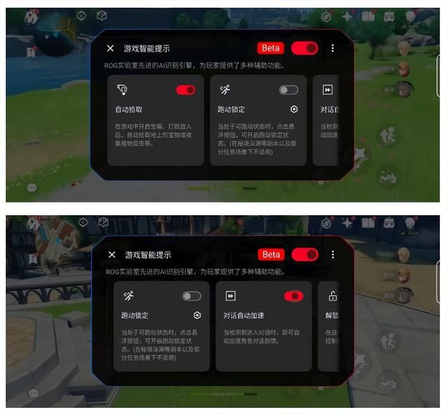 比如自动拾取功能,可以让用户在游戏中快速开启宝箱、捡拾道具等操作。如果是游戏中需要长时间跑动,ROG游戏手机8的跑动锁定功能启动后也可以让用户更省心省力。面对一些游戏中需要频繁对话完成任务时候,ROG游戏手机8的对话自动加速则可以给用户省下大量时间,游戏体验肯定更好。