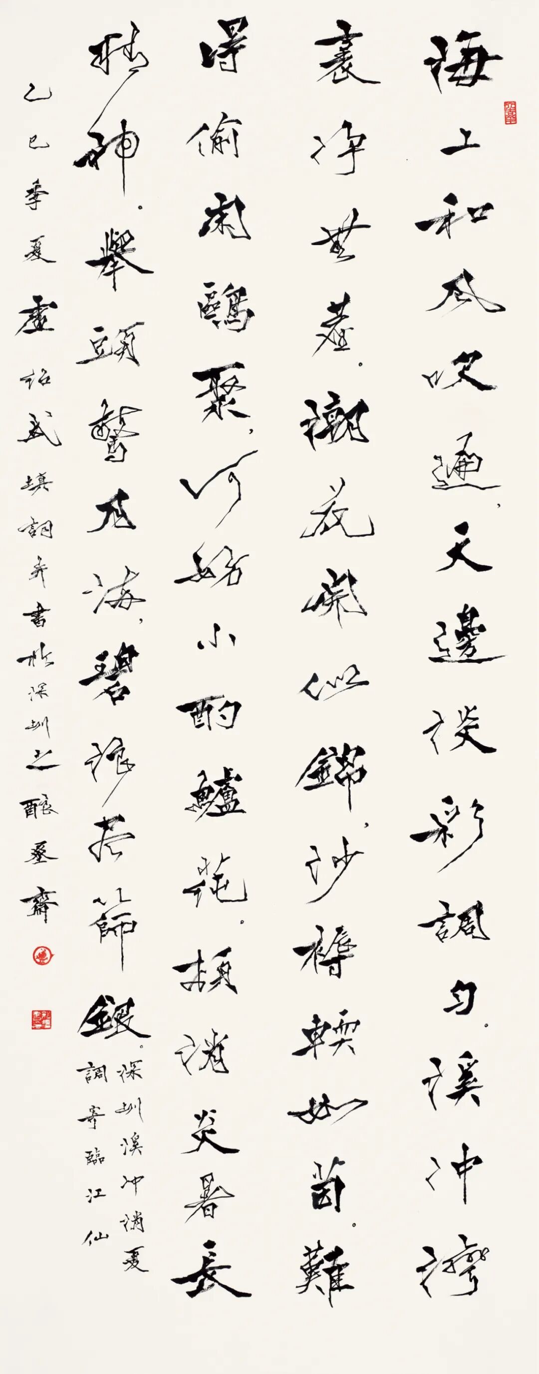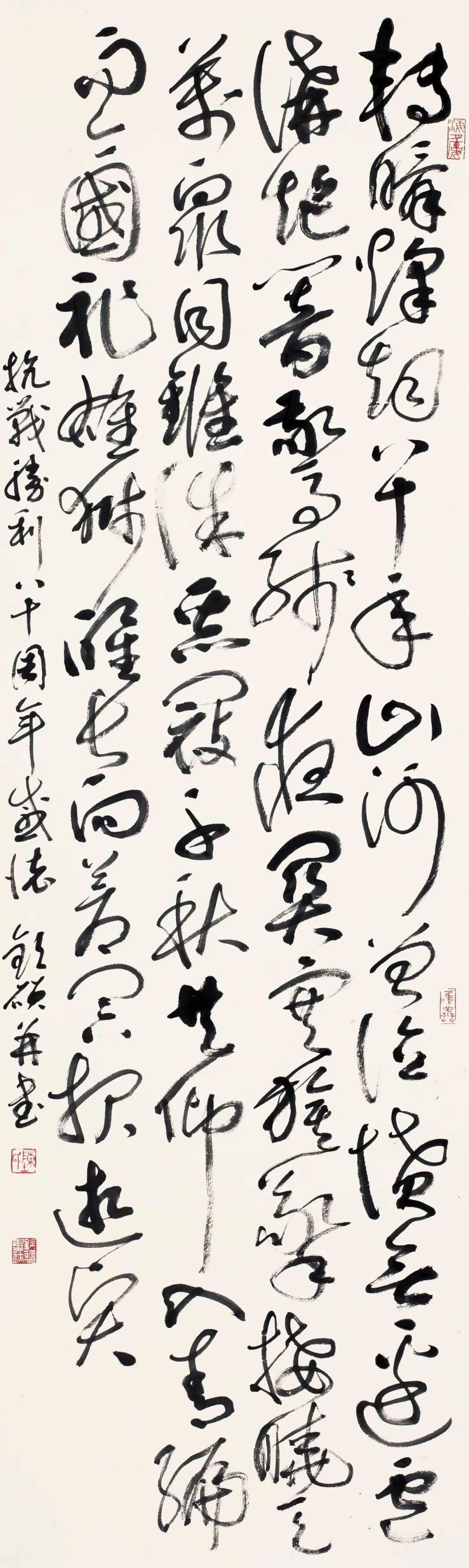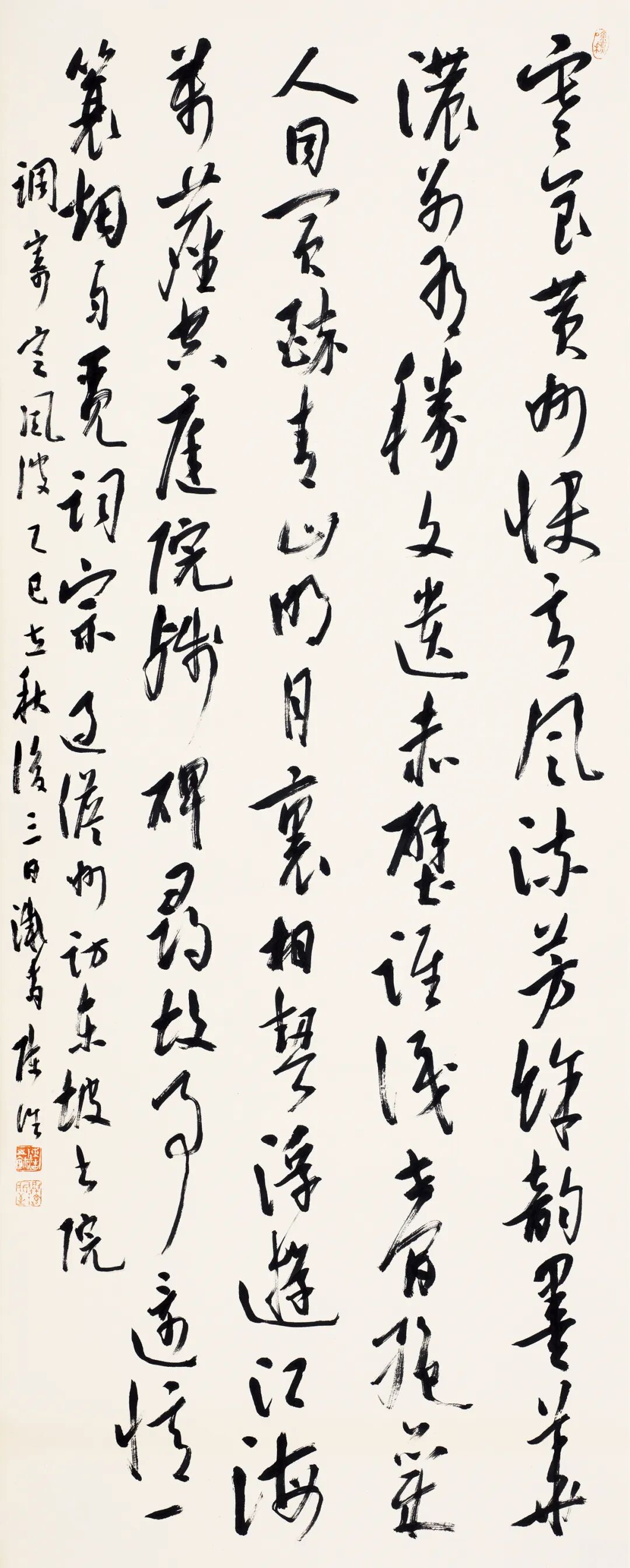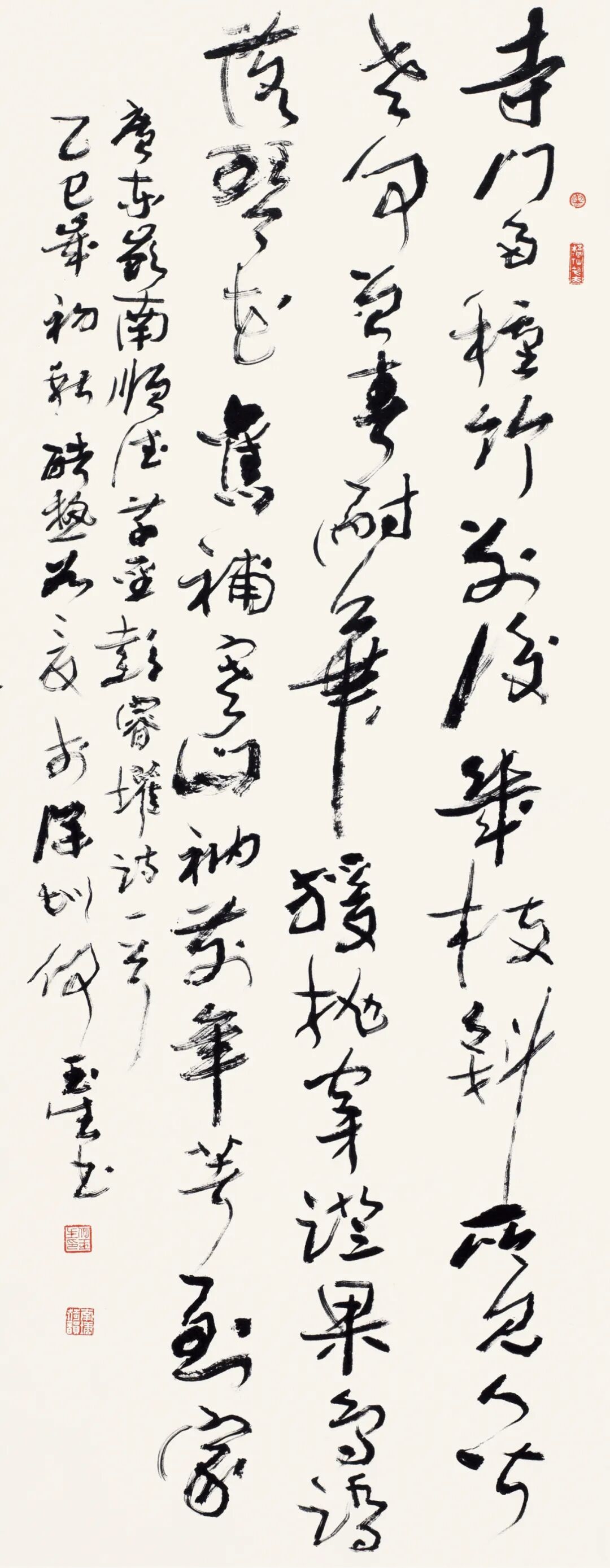 当代书法有其创造性的贡献,既随着尺幅的拓展、生宣纸的使用丰富了书法的表现技法,又因借鉴钟铭、碑石、简牍等文字扩大了书法借鉴的学习范围,还在外来艺术的影响下作出了新的空间安排、装饰风格的设计、特意的用笔规划,其他另有诸如拼贴、做旧等装裱样式的增加,都推动着书法从传统文化形态向纯艺术形态的转变。当下书法创作对求新的普遍要求,让书法的创作加入了大量创意从而转向于对设计的出新求变。但不可不说,这种出新求变偏离了传统书法“不激不厉而风规自远”(唐孙过庭《书谱》语)的审美观念、艺品合于人品的文化属性,以及先入古再出新的成长路径。