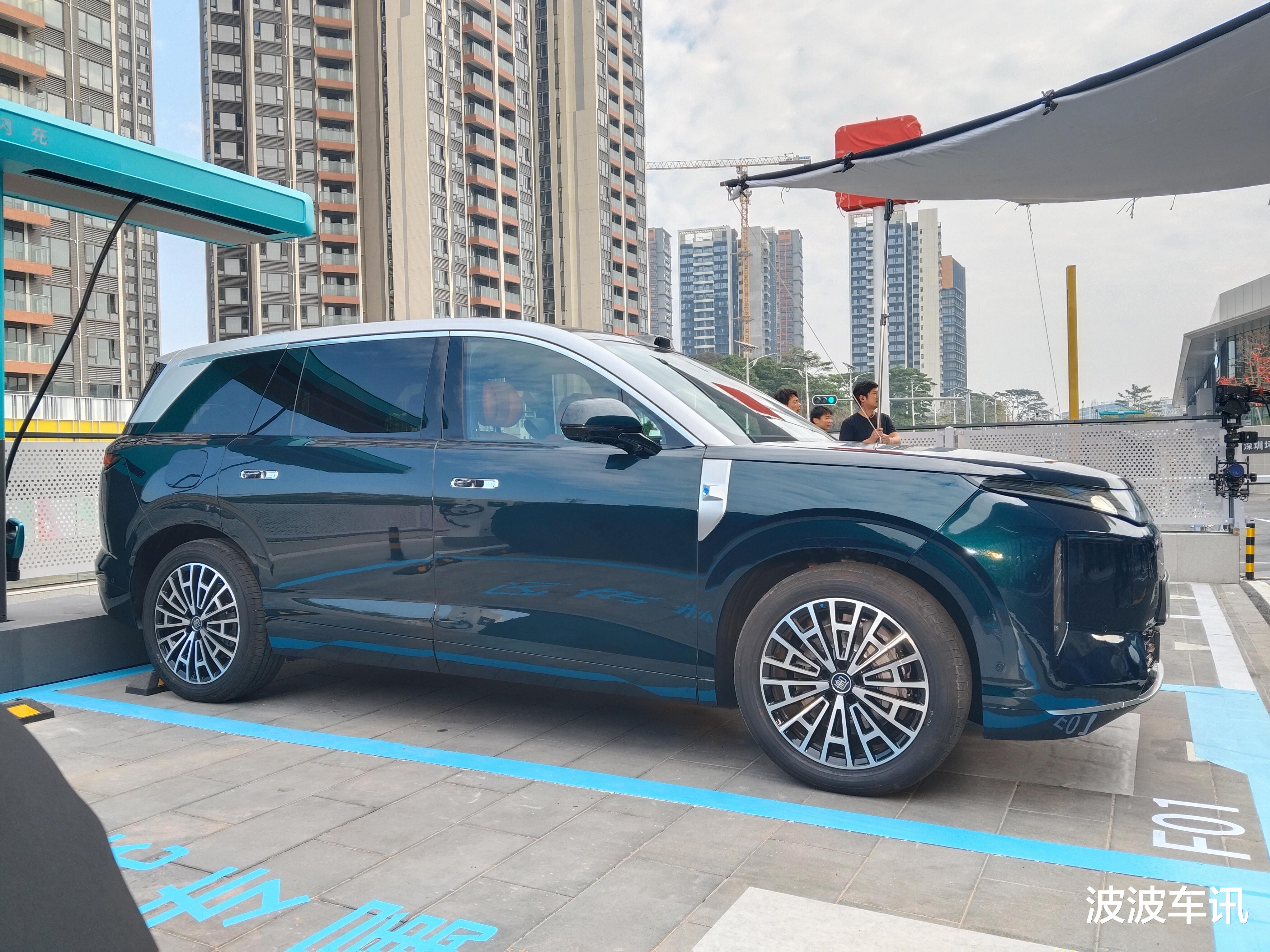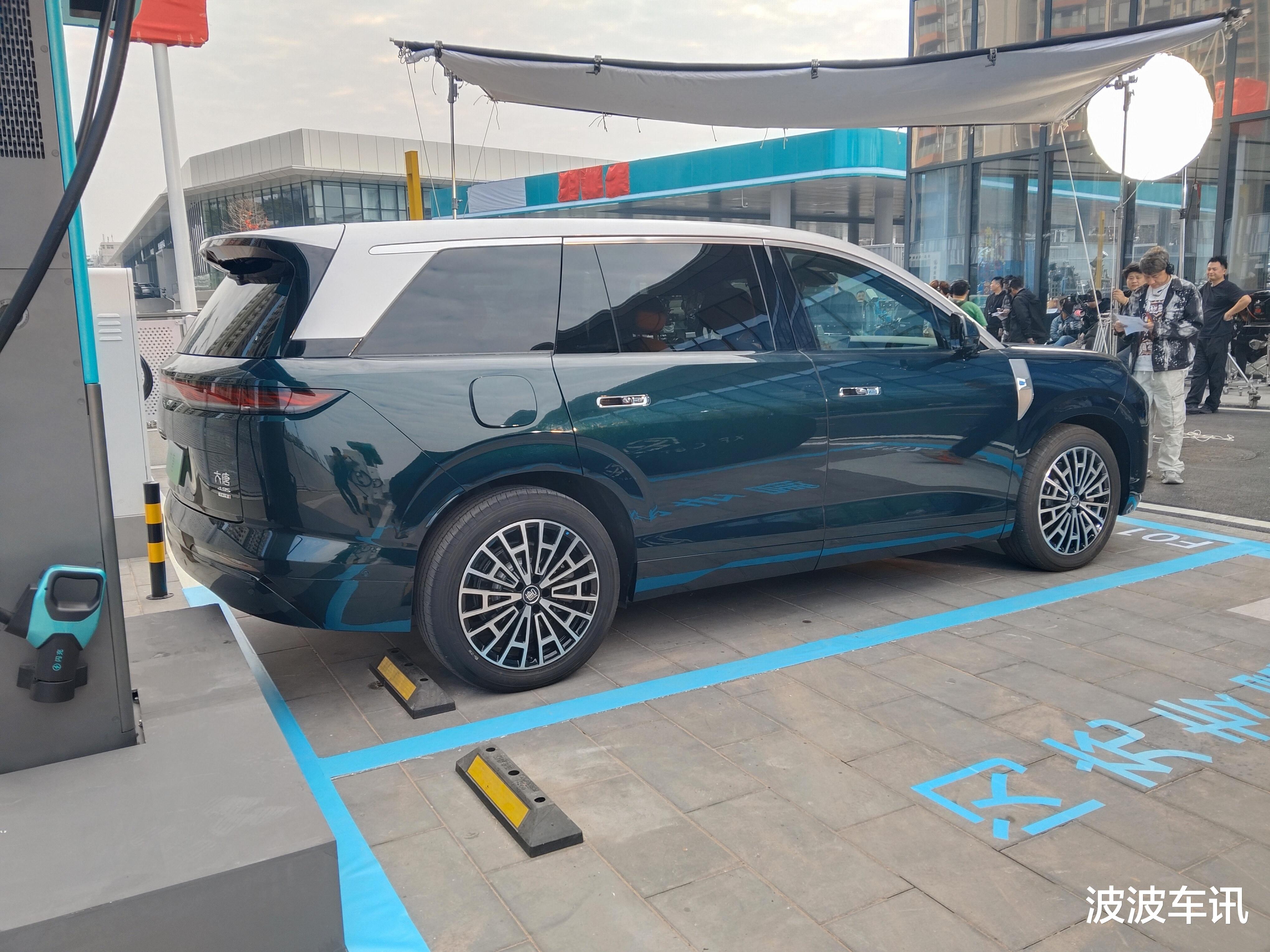 在车身的侧面,我们可以看到新车的车身采用的是非常成熟化的轮廓设计,有路虎揽胜一样的气场表现。此次曝光的这款实车有几个值得注意的细节,比如它前翼子板的位置有一个专属的徽标,上方布局有摄像头。新车的D柱上方有一个镀铬的装饰,看起来也十分的成熟化,风格非常的凌厉。新车的车顶部的尾端有一个独特的细节,它的门把手也非常的科技,车的底部是简约化的包围。大唐的车轮毂也非常的特别,采用的是交替式的风格,很有中国古典的韵味。