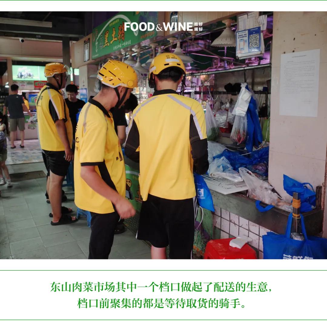 超市。早期的超市主要经营干货,鲜货是为了吸引顾客去买干货,现在发展到货物种类齐全。但近年来超市也深受电商冲击,干货的竞争力难以与电商相比。社区生鲜连锁店,如「钱大妈」「番薯藤」等。这类店距离住宅较近,虽然品类不如肉菜市场齐全,但占了地理位置的优势。会员制超市,如山姆。这类超市凭借大包装、高品质和进口货源,形成与传统市场不同的消费场景。电商,包括传统电商、直播电商,以及由此衍生出来的社区团购。其中,社区团购通常依托线上平台下单、社区门店提货,便利但缺乏即时性。而「盒马鲜生」等品牌则有实体店,采用前置仓的物流布局,线下实体与线上平台结合,实现了相对即时的送达与较低价格「以上每一种渠道都不能取代肉菜市场,但它们的优势都很明显,每一种渠道都吸引了部分客流,如果肉菜市场没有变化,就会败下阵来,蛋糕被瓜分。」钟淑如进一步总结称。