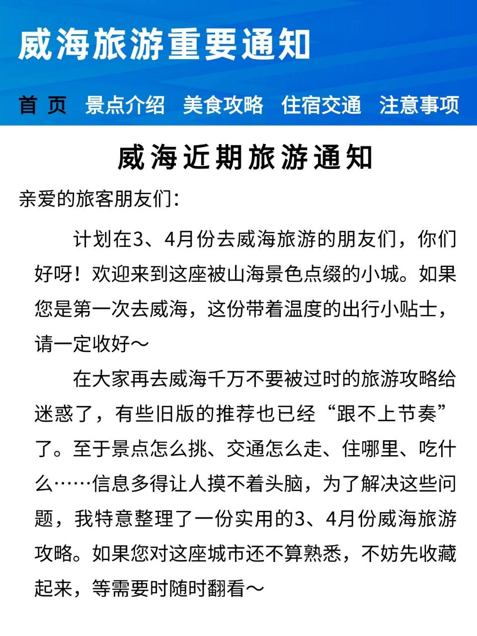 现在大家再去威海千万不要被过时的旅游攻略给迷惑了,有些旧版的推荐也已经“跟不上节奏”了,我特意整理了一份清晰、简洁又比较实用的3、4月份威海旅游攻略,需要的姐妹一定要收藏~